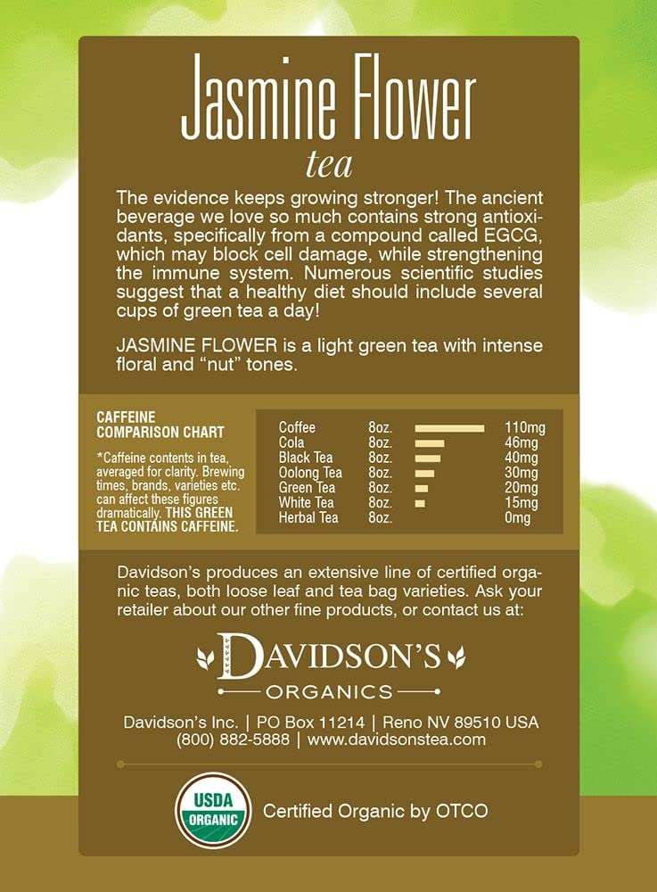 Davidson'S Organics, Jasmine Flower Tea, 8-Count Tea Bags, Pack Of 12