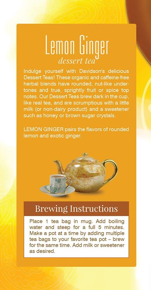 Davidson'S Organics, Lemon Ginger, 25-Count Tea Bags, Pack Of 6