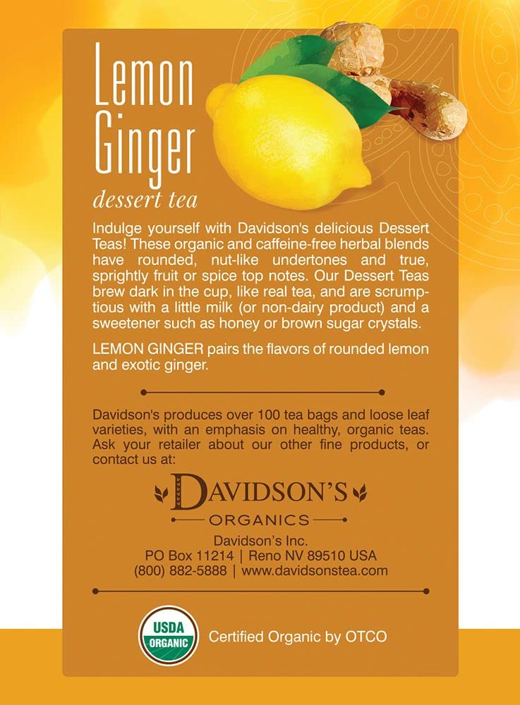Davidson'S Organics, Lemon Ginger, 8-Count Tea Bags, Pack Of 12