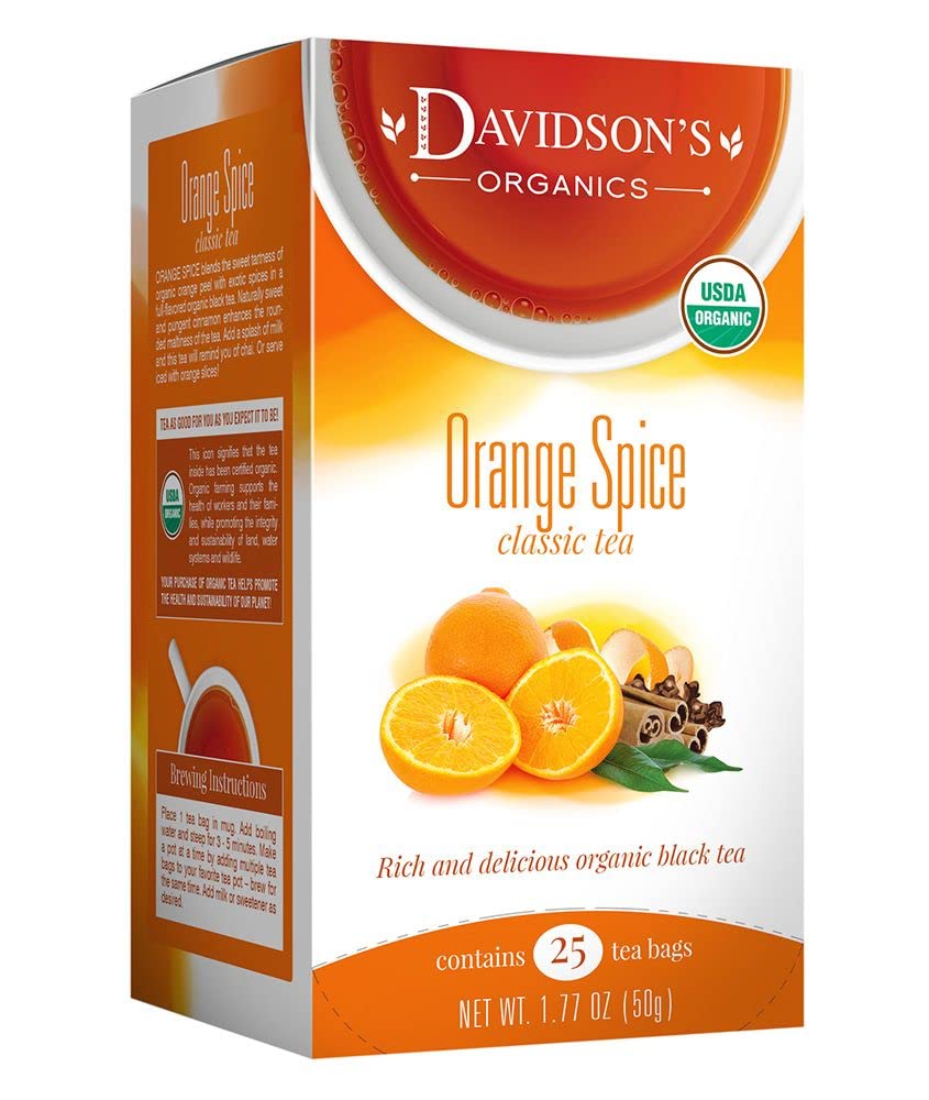 Orange Spice combines organic Valencia orange peel with exotic spices and a base of organic black tea. Davidson's Orange Spice is a full-bodied black tea brew with citrus nuances
