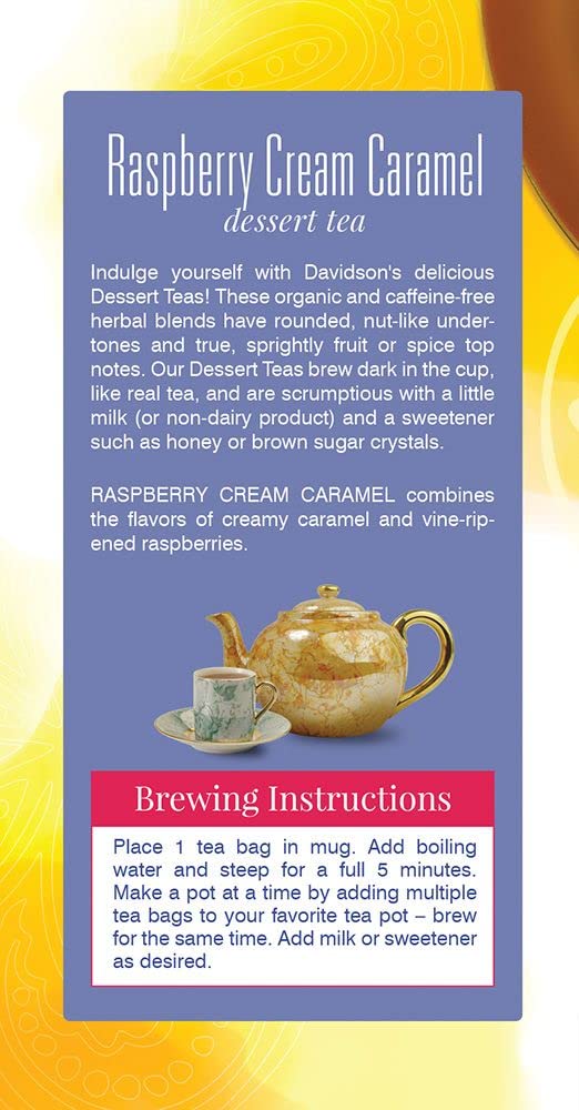 Davidson'S Organics, Raspberry Cream Caramel, 25-Count Tea Bags, Pack Of 6
