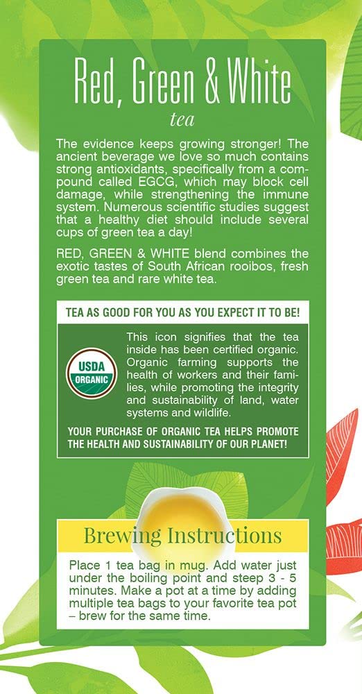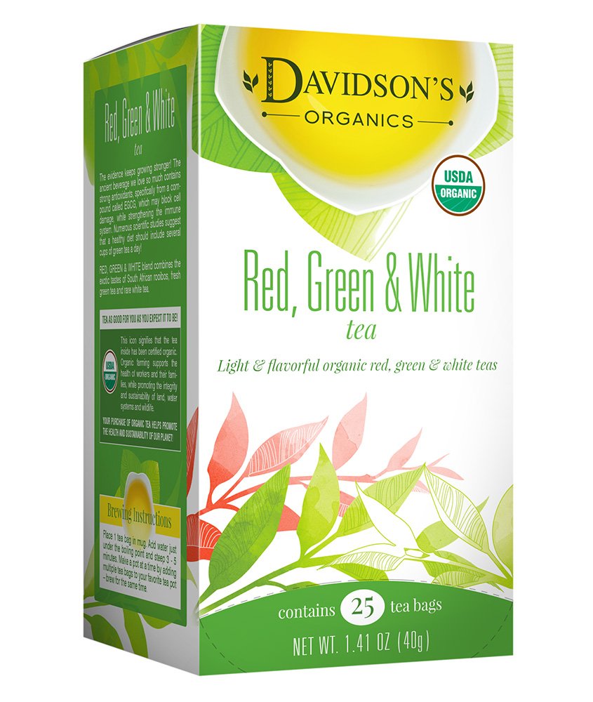 Davidson'S Organics, Red, Green & White Tea, 25-Count Tea Bags, Pack Of 6