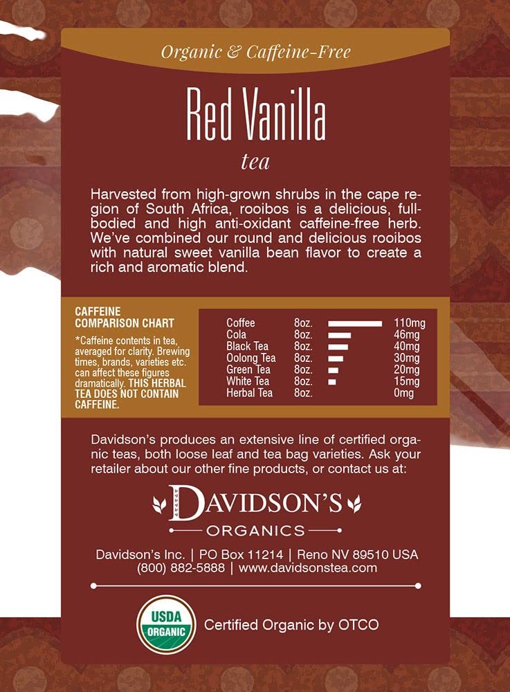 Davidson'S Organics, Red Vanilla, 8-Count Tea Bags, Pack Of 12