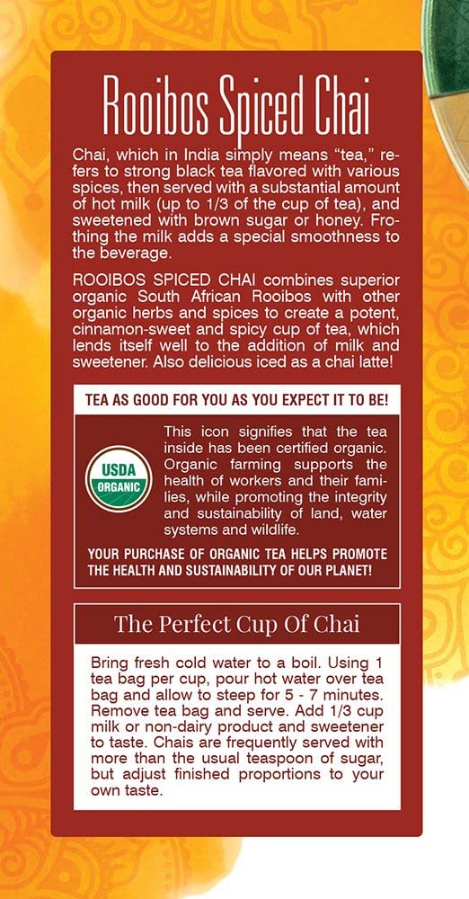 Davidson'S Organics, Rooibos Spiced Chai, 25-Count Tea Bags, Pack Of 6