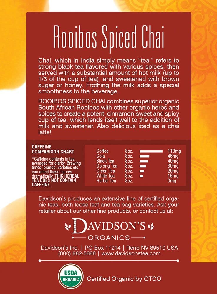 Rooibos Spiced Chai Combines Robust Spices With An Earthy Base Of South African Rooibos. Davidson'S Rooibos Spiced Chai Is A Full-Bodied Brew With A Sweet And Spicy Finish