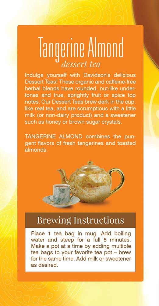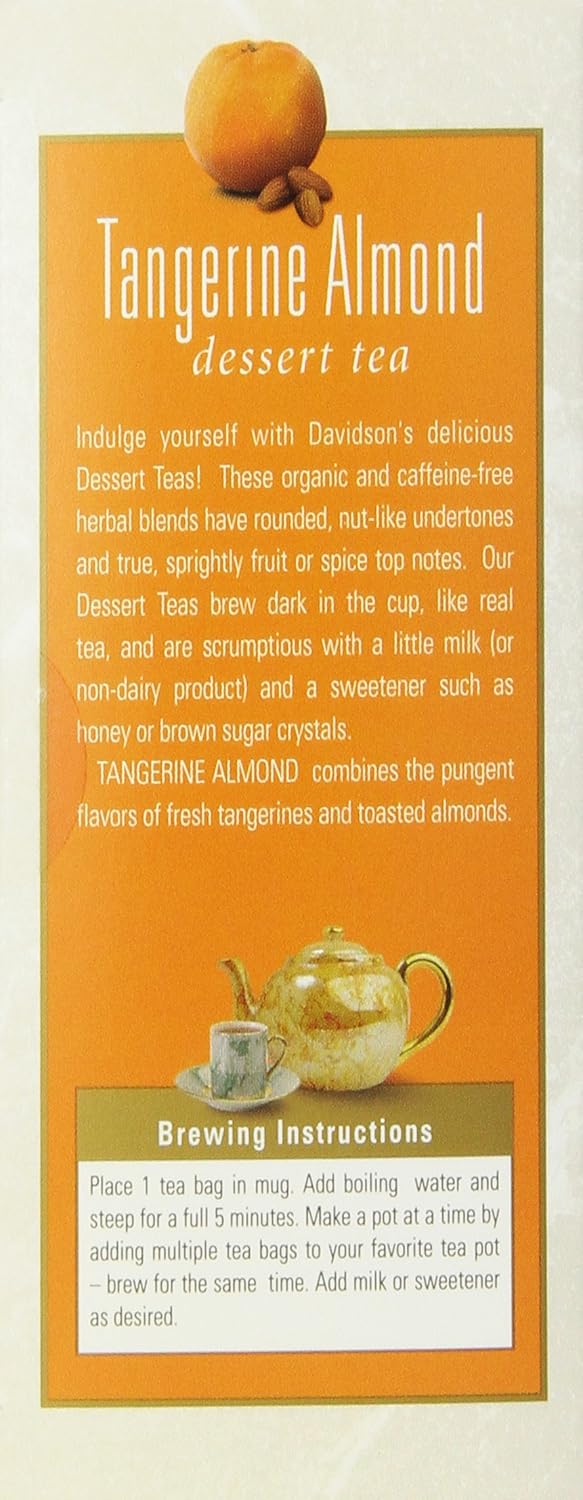 Tangerine Almond Combines Citrus Essence And Toasted Almonds With A Base Of Creamy Chicory, Barley And South African Rooibos, Making The Blend A Perfect Caffeine-Free Dessert Alternative With Only 3 Calories Per Cup. Davidson'S Tangerine Almond Is A Rich, Buttery Herbal Blend With Nutty Top Notes And Citrus Undertones