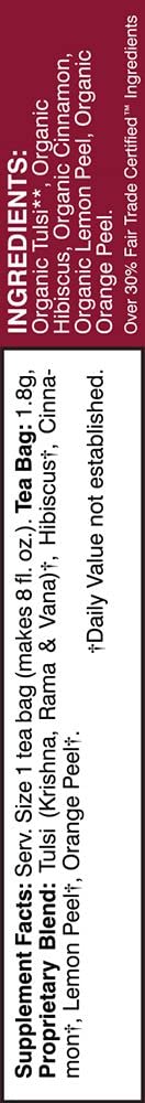 Tulsi Hibiscus Flower combines hibiscus, citrus, and cinnamon spice with three adaptogenic varieties of Tulsi (Krishna, Rama, and Vana). Davidson's Tulsi Hibiscus Flower is a tart, rosy brew with citrus undertones and cinnamon top notes
