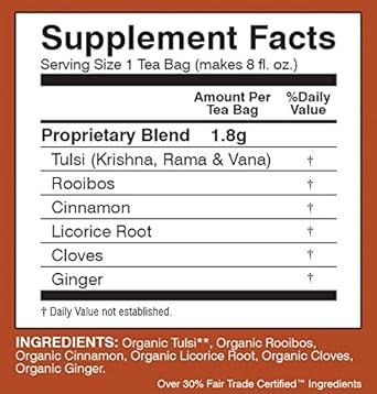 Tulsi Rooibos Chai Blends Three Adaptogenic Varieties Of Tulsi (Krishna, Rama And Vana) With South African Rooibos And Aromatic Spices. Davidson'S Tulsi Rooibos Chai Is A Full-Bodied, Spicy Brew With Abundant Antioxidant Properties