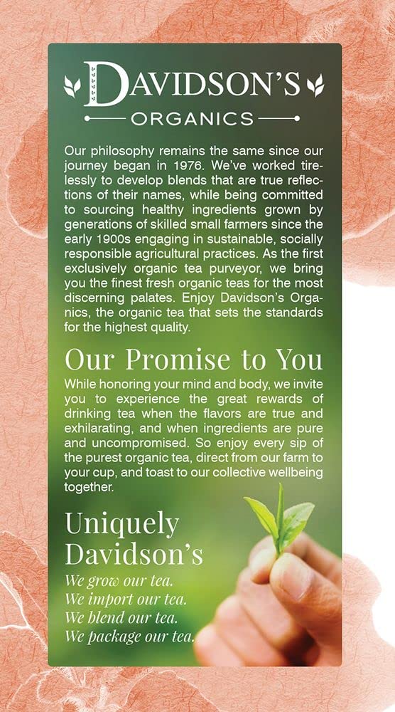 Trust Our Tea: Davidson'S Organics Was The First Purveyor Of Fine Organic Teas. Since 1976, We’Ve Worked Tirelessly To Develop Blends That Are True Reflections Of Their Names, While Being Committed To Sourcing Healthy Ingredients Grown By Generations Of Skilled Small Farmers. Enjoy Davidson'S Organics, The Organic Tea That Sets The Standards For The Highest Quality