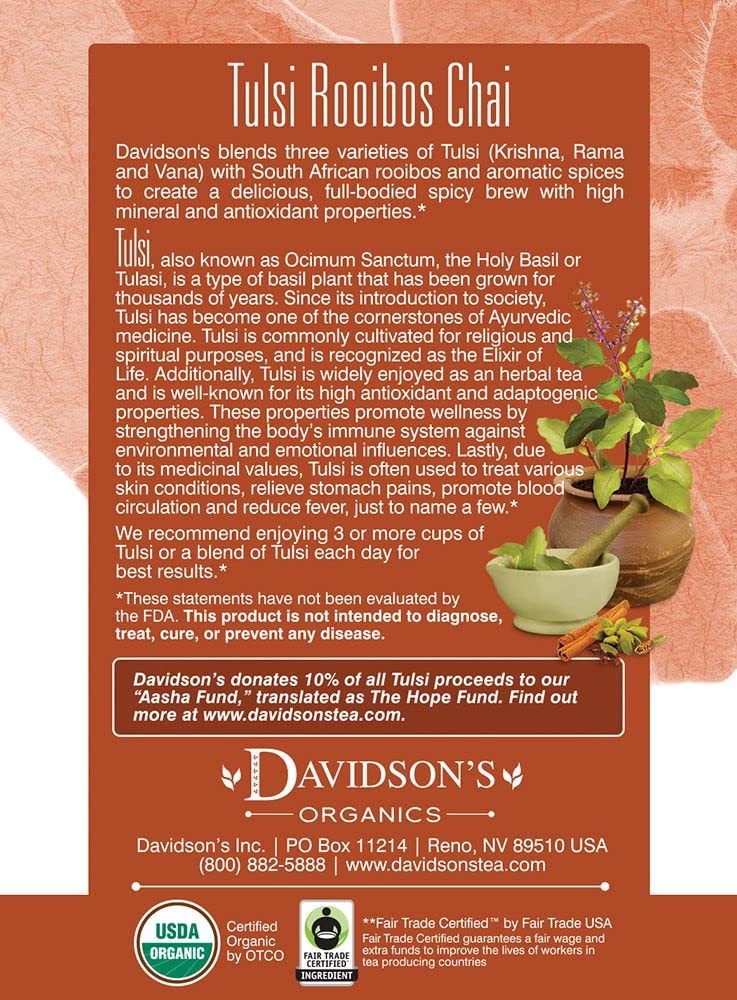 Davidson'S Organics, Tulsi Rooibos Chai, 8-Count Tea Bags, Pack Of 12