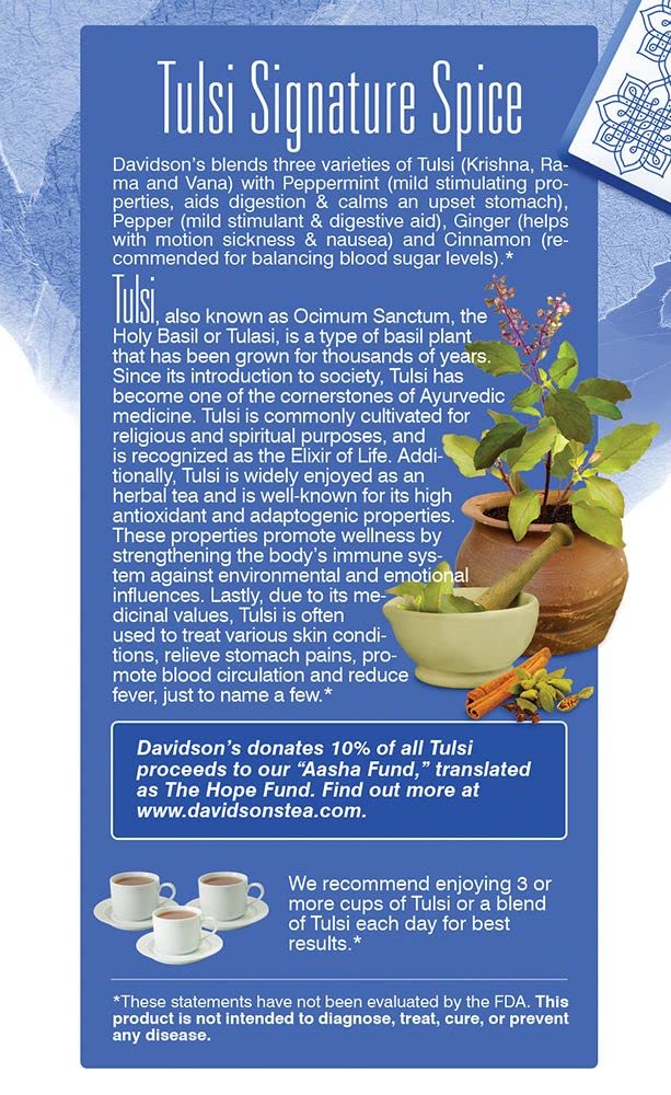 Tulsi Signature Spice Combines Mint, Citrus And Various Spices With Three Adaptogenic Varieties Of Tulsi (Krishna, Rama, And Vana). Davidson'S Tulsi Signature Spice Is A Fragrant Brew With Smooth, Minty Undertones And Cinnamon Top Notes
