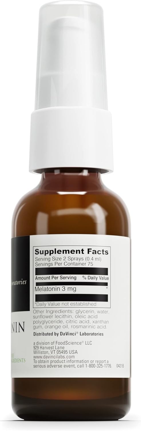 DESCRIPTION : DaVinci Labs Liposomal Melatonin Spray - Sleep Support Supplement - Bedtime Spray with 3mg Melatonin Per Serving, Fast-Acting Formula, Promotes Restful Sleep* - 30 mL
