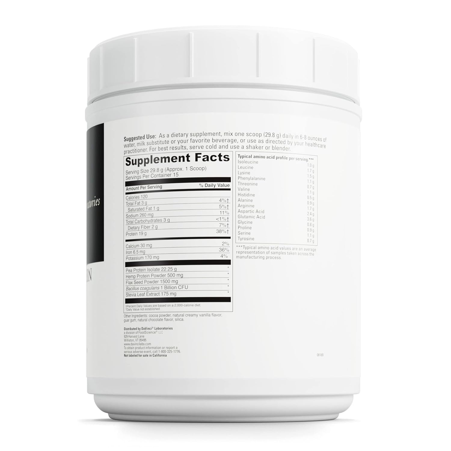 DESCRIPTION : DaVinci Labs Vegan Protein - Protein Powder Supplement for Muscle and Tissue Repair* - With Pea, Flax Seed, and More - Creamy Chocolate Flavor - Soy and Gluten-Free - 447g, 15 Servings
