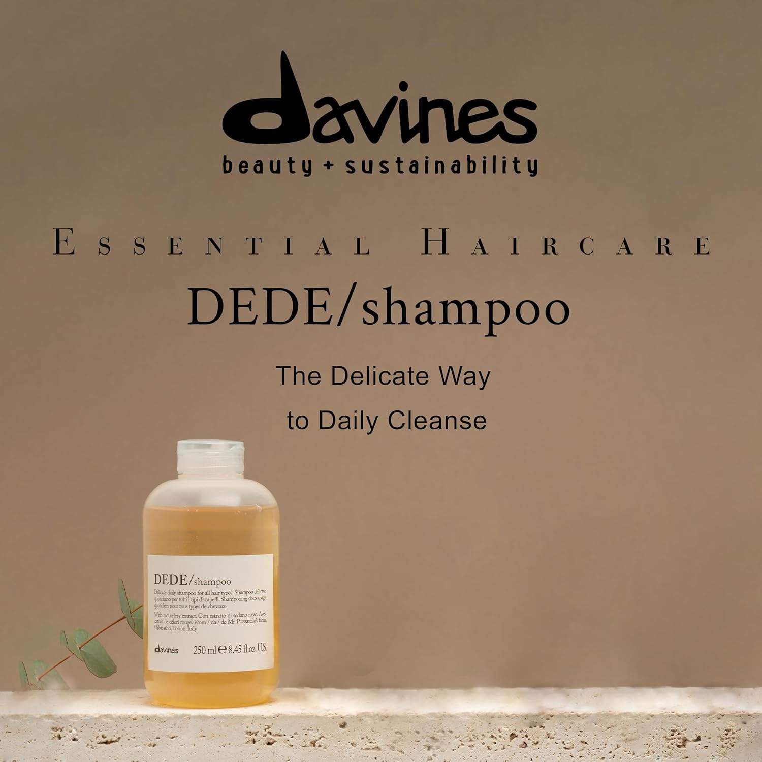 Davines DEDE Shampoo, Delicate Daily Cleansing for All Hair Types, Balance and Add Shine
