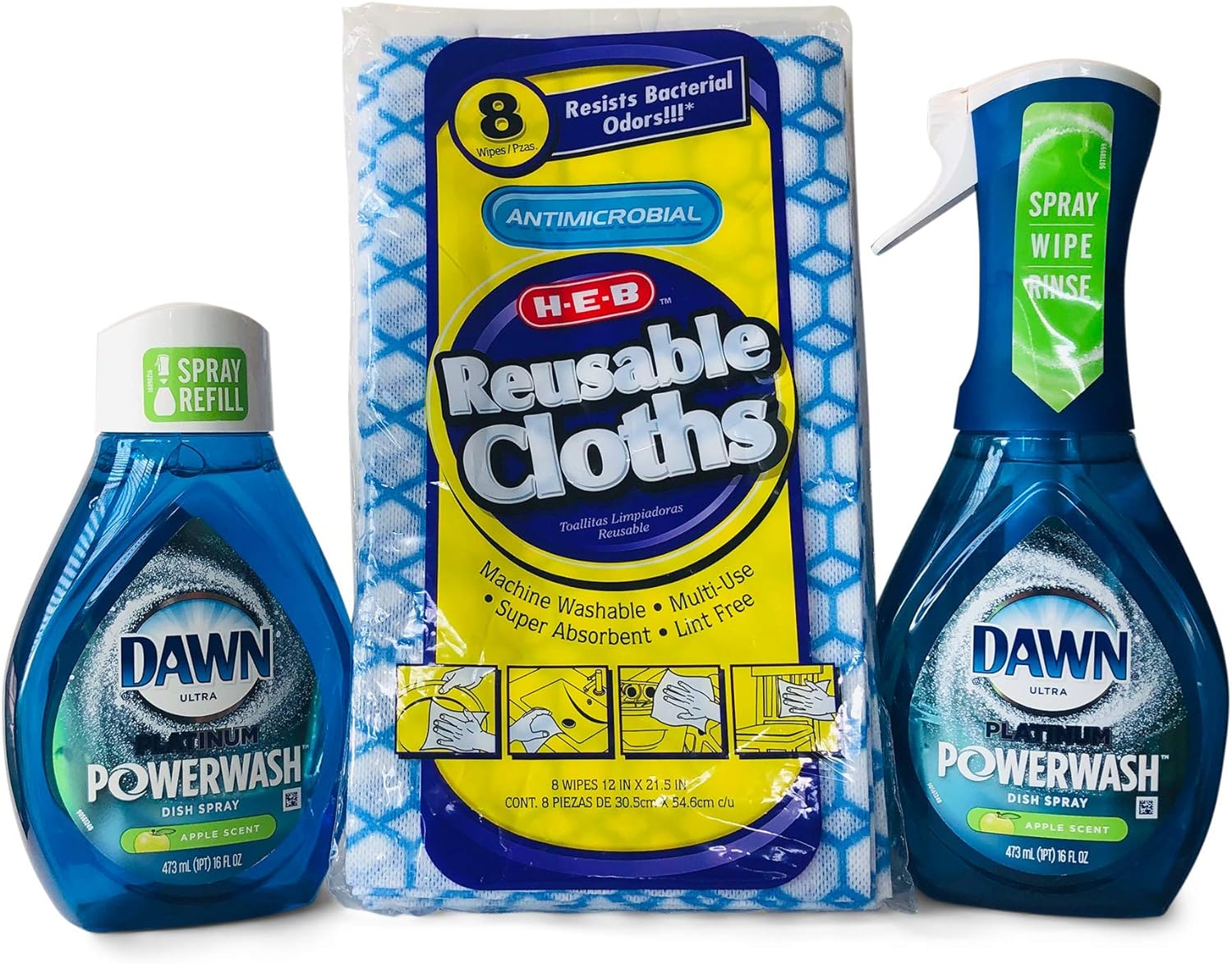 Dawn Powerwash Apple Scent Bundle: 1 Starter (16Oz) + 1 Refill (16Oz) + 8 Heb Reusable Cloths