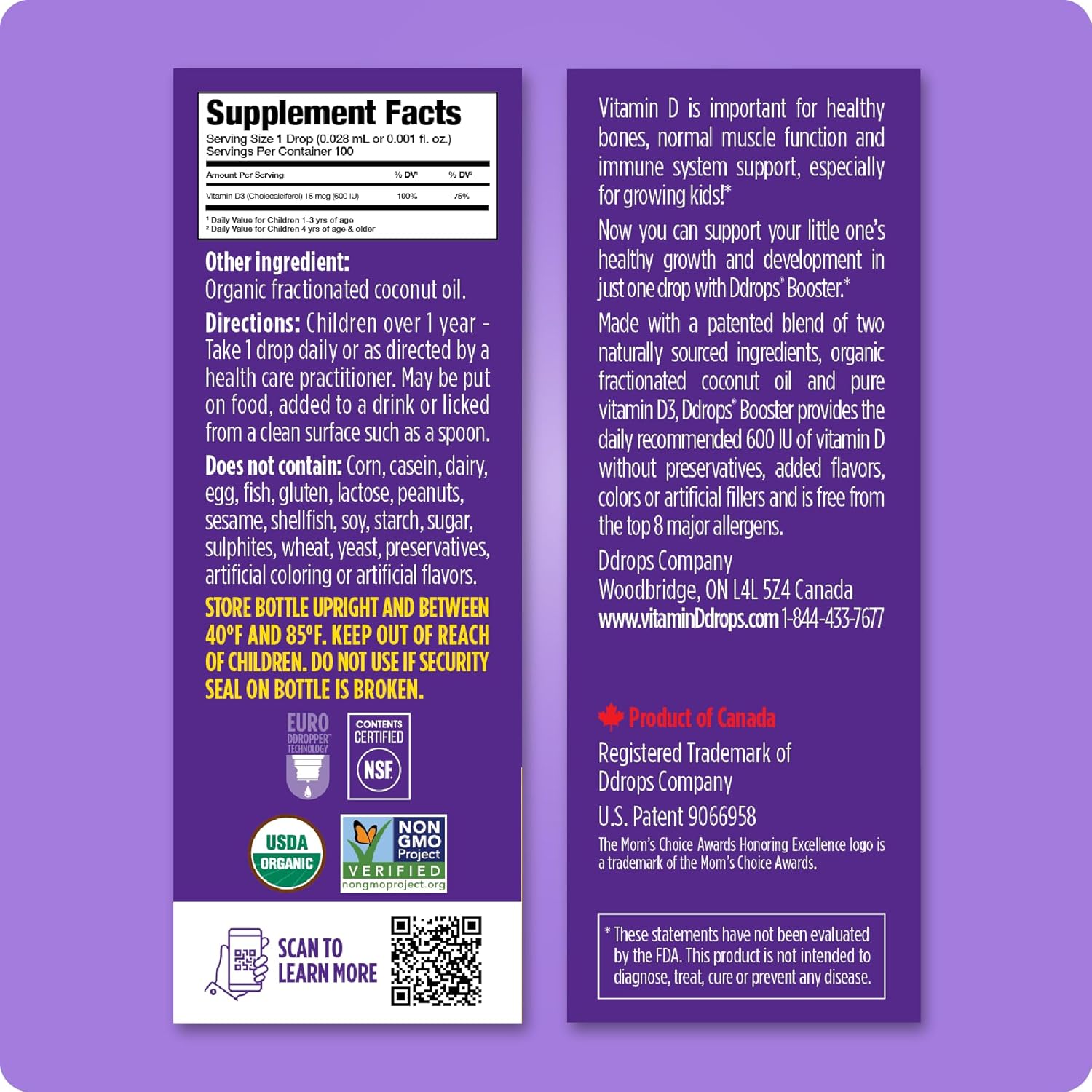 Ddrops Kids Booster 600Iu 100 Drops - Daily Liquid Vitamin D For Kids. Support Strong Bones & Immune System In Children. No Preservatives, No Sugar, Non-Gmo, Allergy-Friendly