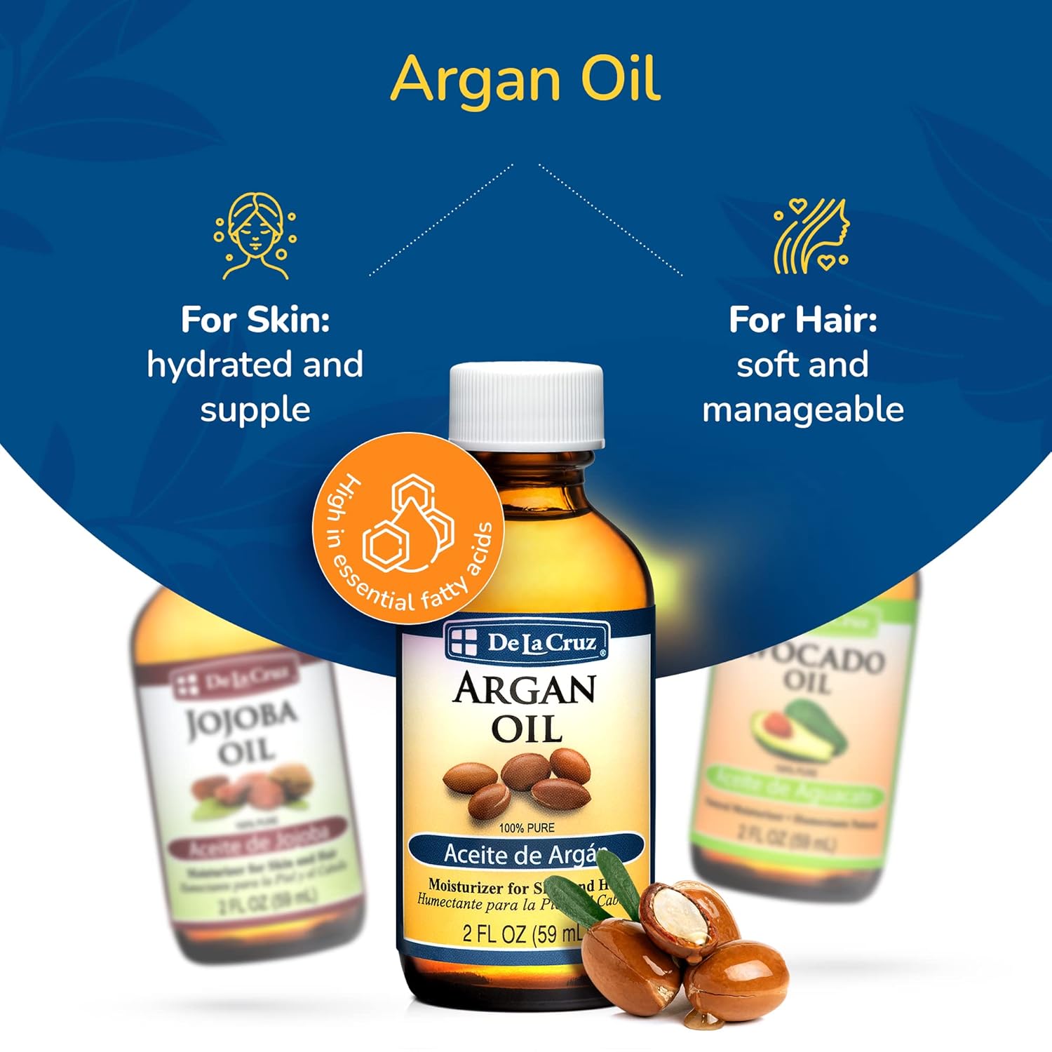 De La Cruz - Avocado Oil, Argan Oil And Jojoba Oil Bundle - 100% Pure And Natural Oils For Hair And Skin - 3 Bottles - 2 Fl Oz Each