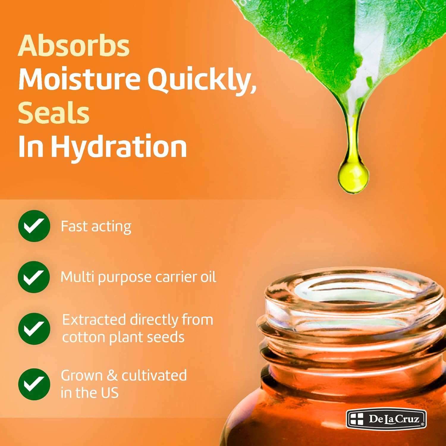 De La Cruz Cottonseed Oil - Moisturizer For Skin And Hair - Multipurpose Carrier Oil - 2 Fl Oz (1 Bottle)
