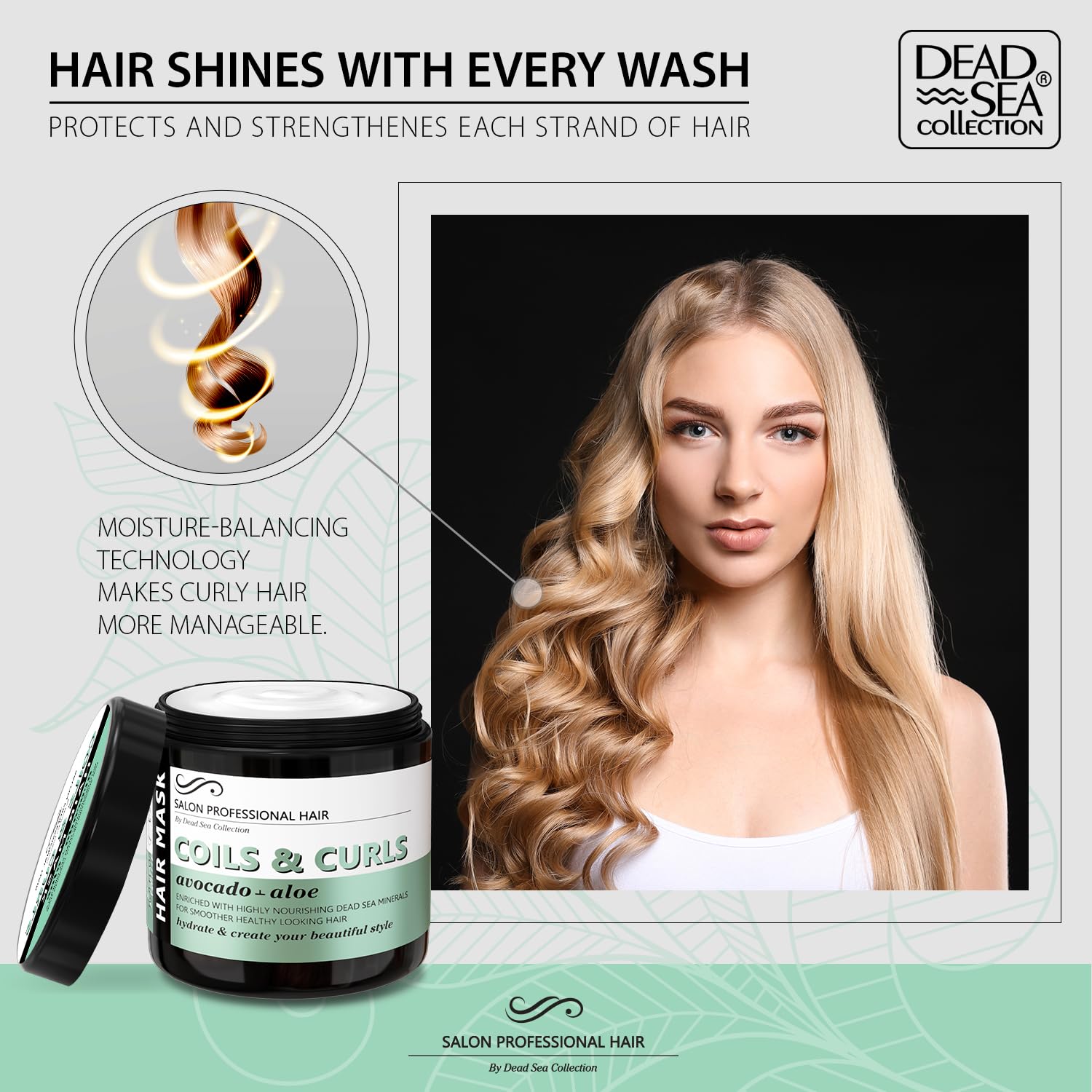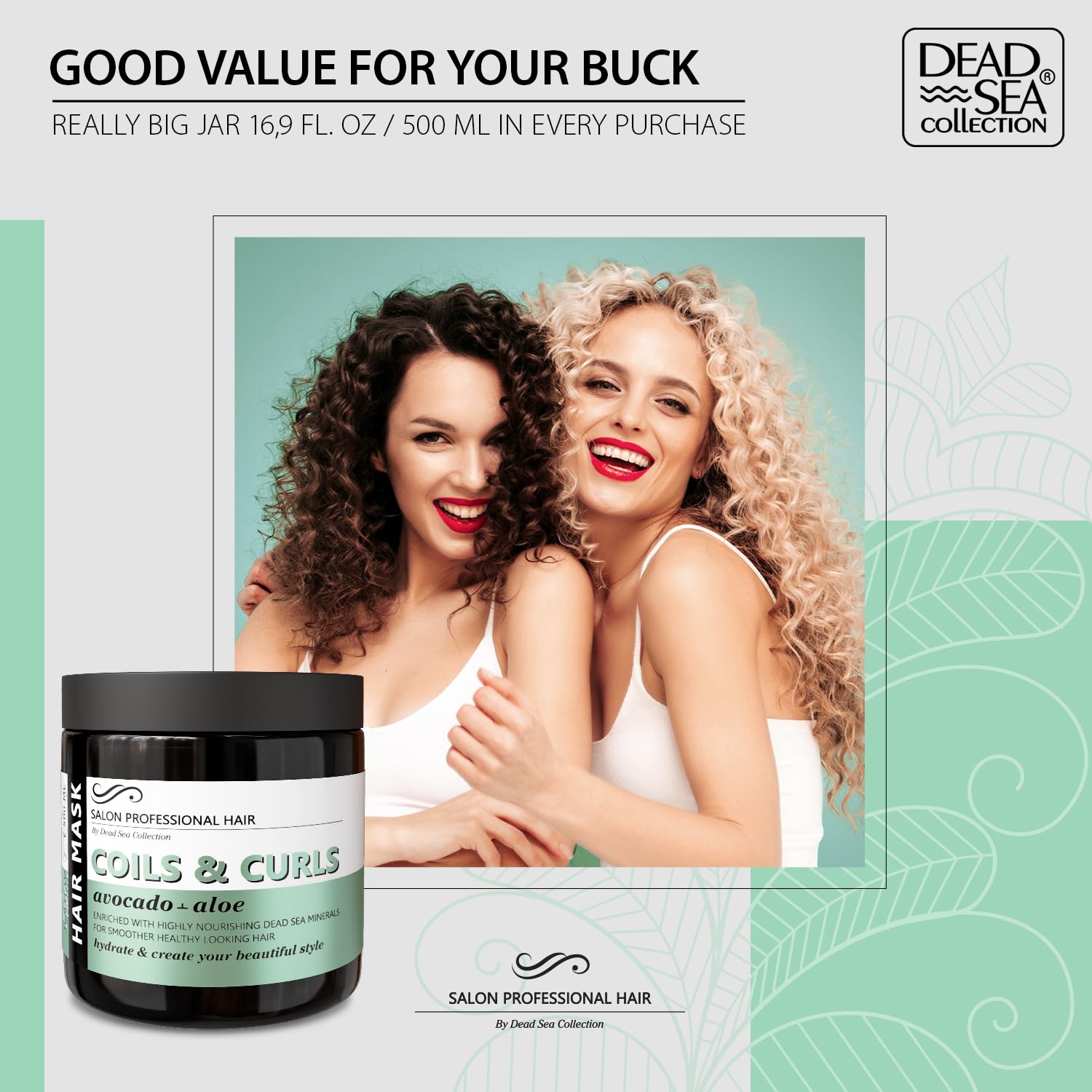 About this item Nourishing Dead Sea Minerals: Our curly hair mask is enriched with the perfect blend of dead sea minerals to deeply nourish and hydrate your hair, leaving it looking and feeling healthy and shiny. Avocado oil and extract Aloe work together to deeply moisturize your hair, leaving it soft and manageable. It also helps to protect your hair from damage caused by styling tools and environmental factors. Vitamin E and Pro-Vitamin B5 to provide your hair with the nutrients it needs to stay healthy and strong. These vitamins help to nourish your hair from the inside out, leaving it looking and feeling its best. Moisturizes and creates beautiful styles: Our hair mask not only moisturizes your hair but also helps in creating a beautiful style. It adds shine and volume, making your hair look fuller and more vibrant. Easy to use: Apply hair mask to damp hair, leave it on for 5-10 minutes, then rinse thoroughly. For best results, use once or twice a week. Our mask is cruelty-free, paraben-free, and sulfate-free, making it a safe and effective option for curly hair type. › See more product details,Nourishing Dead Sea Minerals: Our curly hair mask is enriched with the perfect blend of dead sea minerals to deeply nourish and hydrate your hair, leaving it looking and feeling healthy and shiny,Avocado oil and extract Aloe work together to deeply moisturize your hair, leaving it soft and manageable. It also helps to protect your hair from damage caused by styling tools and environmental factors,Vitamin E and Pro-Vitamin B5 to provide your hair with the nutrients it needs to stay healthy and strong. These vitamins help to nourish your hair from the inside out, leaving it looking and feeling its best,Moisturizes and creates beautiful styles: Our hair mask not only moisturizes your hair but also helps in creating a beautiful style. It adds shine and volume, making your hair look fuller and more vibrant,Easy to use: Apply hair mask to damp hair, leave it on for 5-10 minutes, then rinse thoroughly. For best results, use once or twice a week. Our mask is cruelty-free, paraben-free, and sulfate-free, making it a safe and effective option for curly hair type