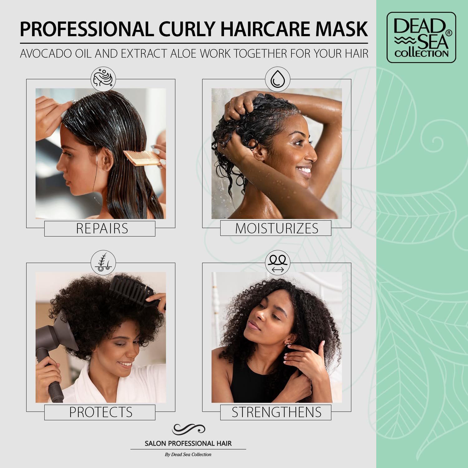 Dead Sea Collection Hair Mask For Curly Hair - With Avocado, Aloe And Dead Sea Minerals - Repair, Strengthens And Moisturizes Hair - 16.9 Fl. Oz