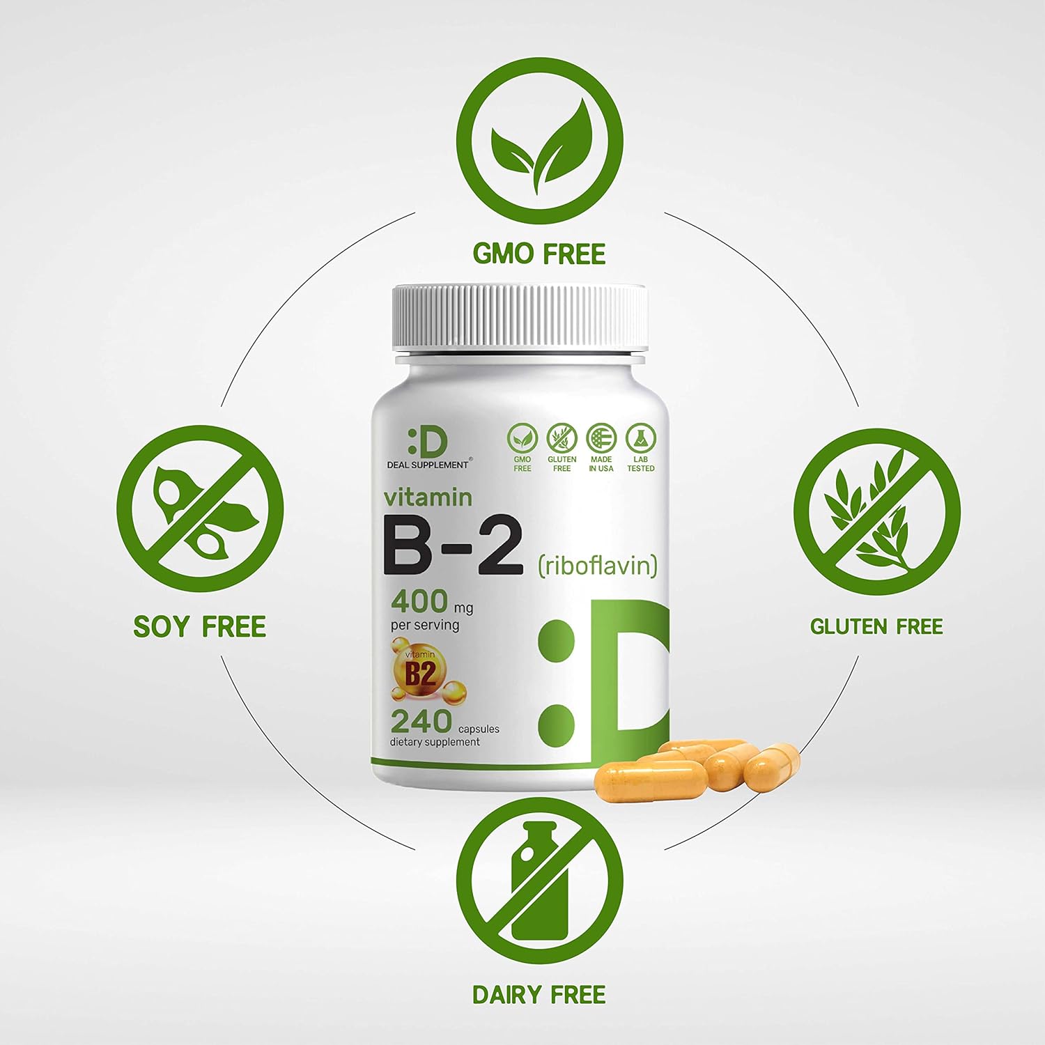 DESCRIPTION : DEAL SUPPLEMENT Vitamin B2 Riboflavin 400 mg, 240 Capsules | Essential B Vitamins | Promotes Healthy Cells & Energy Production β Non-GMO, Third Party Tested