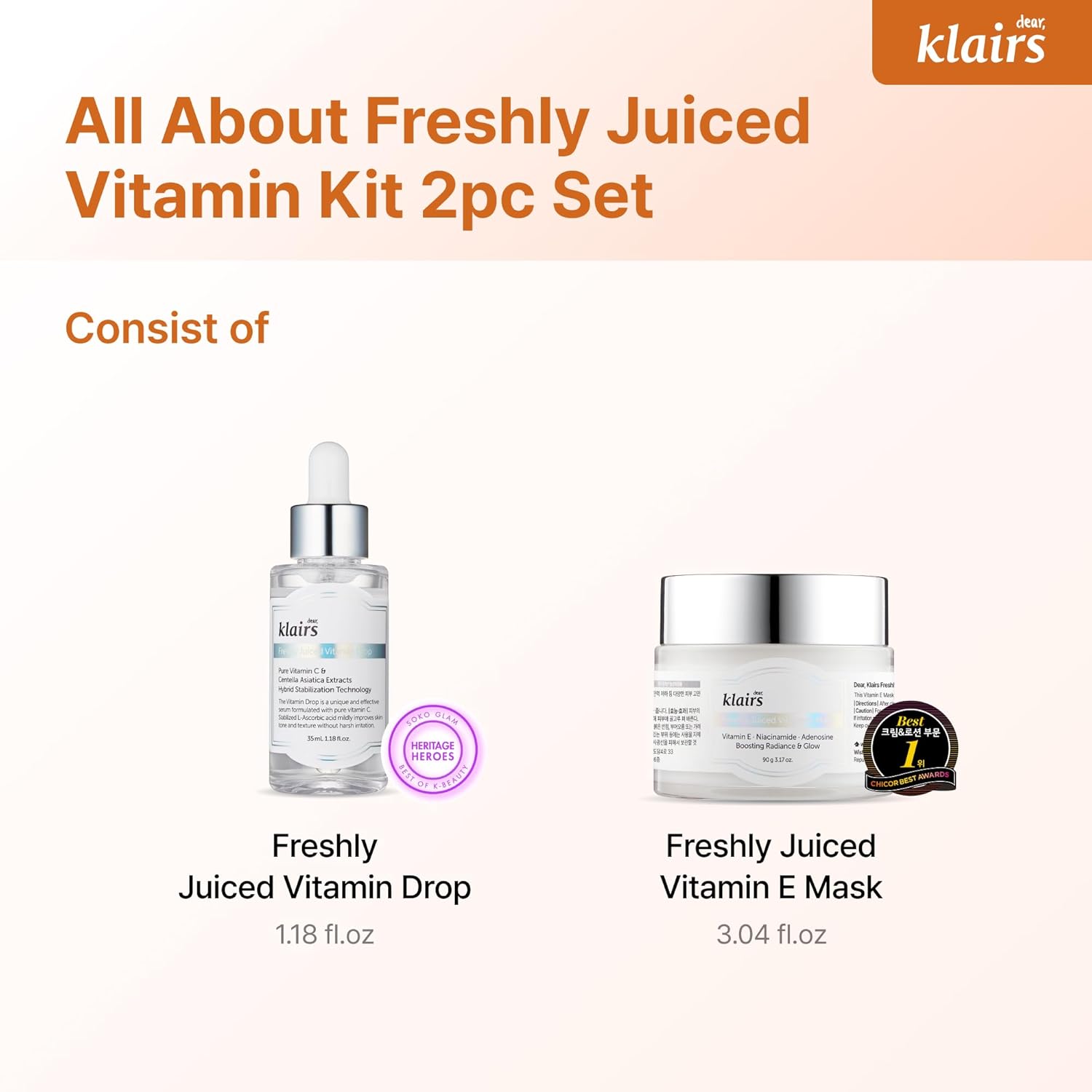 Dearklairs Ultimate Kit For Revitalizing Dull Skin, 2 Step Freshly Juiced Vitamin Set, A Mild And Effective Vitamin Care Routine