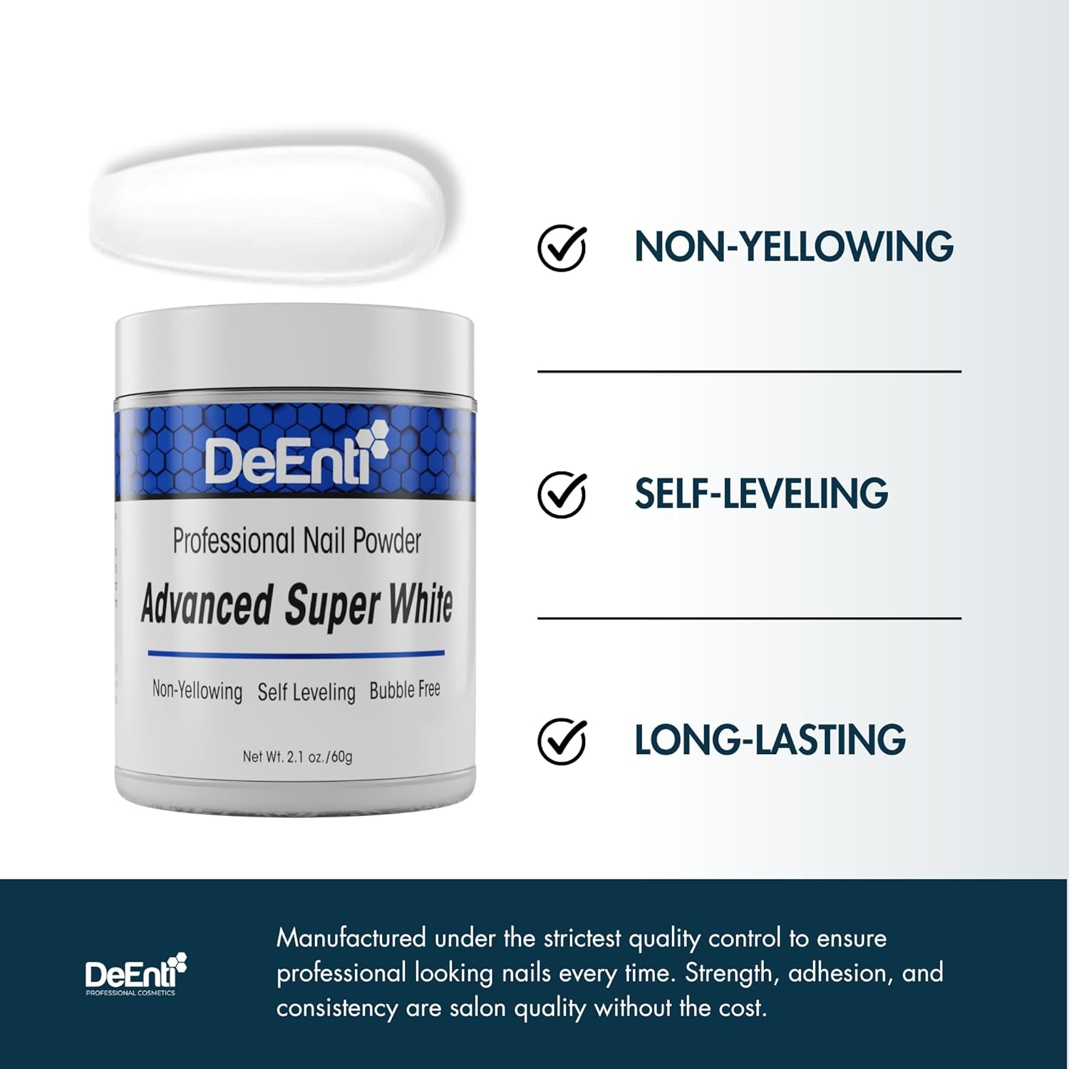 Deenti Acrylic Nail Powder, 2Oz Bright White Acrylic Powder Dip For Nails, Long Lasting Salon Quality, Bubble Free Professional Nail Powder For Manicure Nail Art, Fake Nails, Nail Carving & Extensions