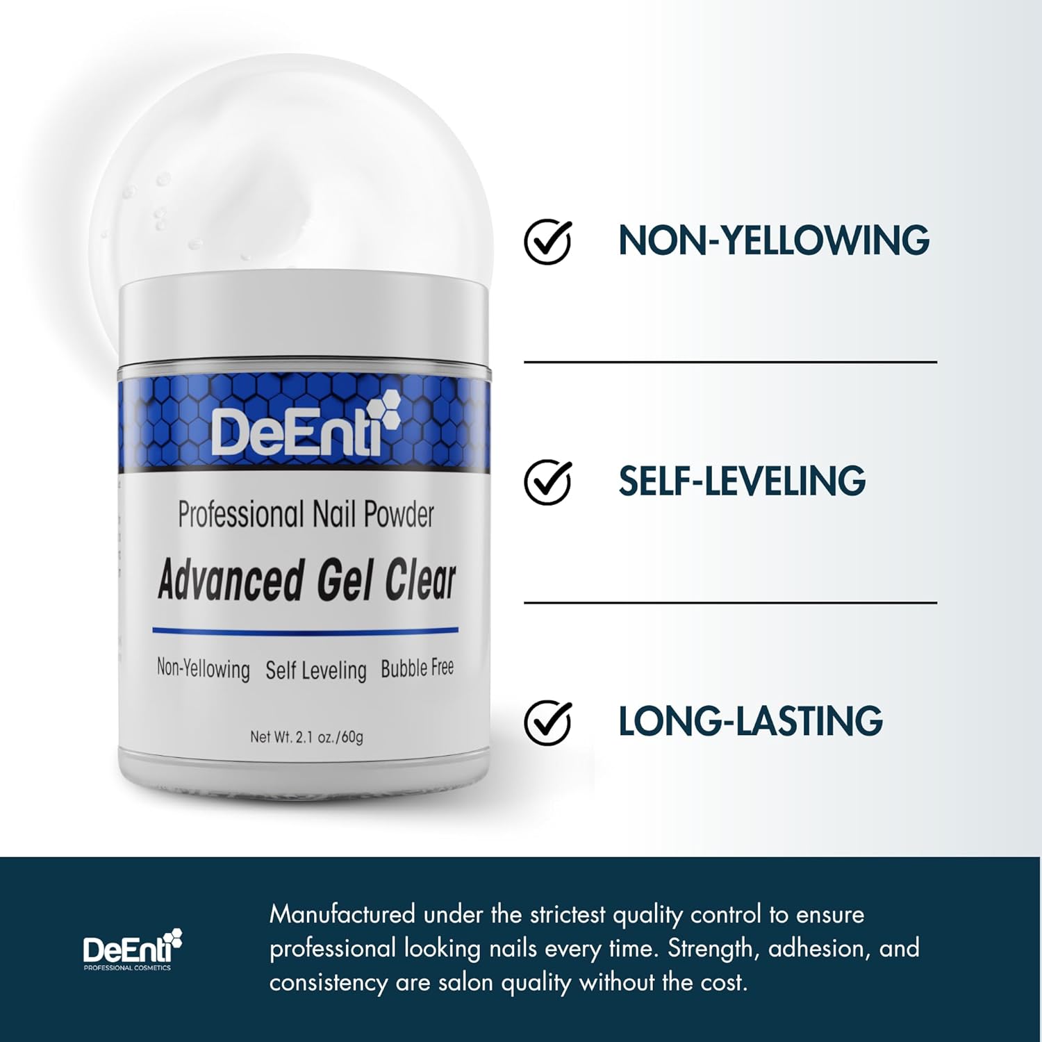 Deenti Acrylic Nail Powder, 2Oz Crystal Clear Acrylic Powder Dip For Nails, Long Lasting Salon Quality, Bubble Free Professional Nail Powder For Manicure Nail Art Fake Nails, Nail Carving & Extensions