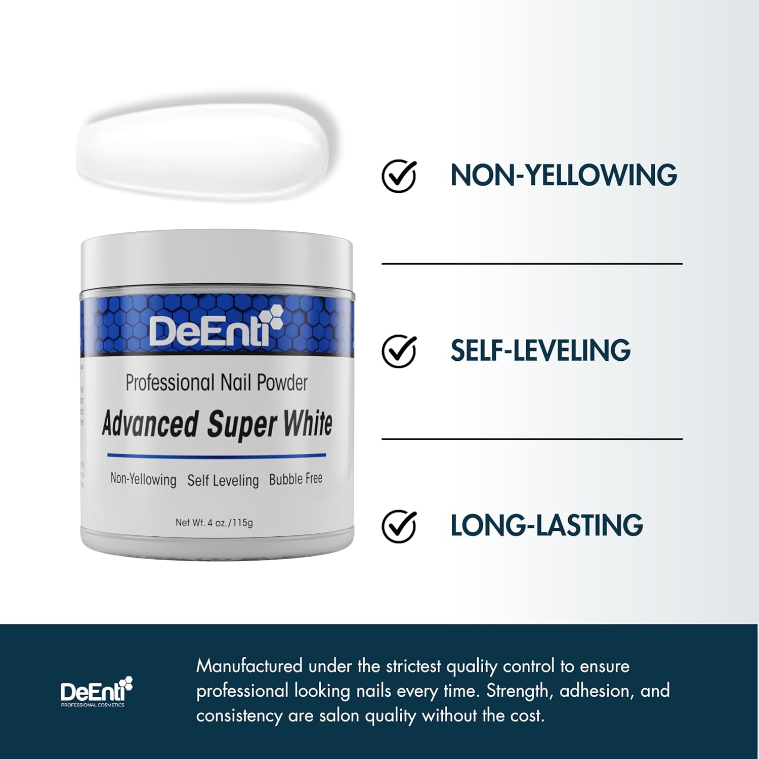 Deenti Acrylic Nail Powder, 4Oz Bright White Acrylic Powder Dip For Nails, Long Lasting Salon Quality, Bubble Free Professional Nail Powder For Manicure Nail Art, Fake Nails, Nail Carving & Extensions