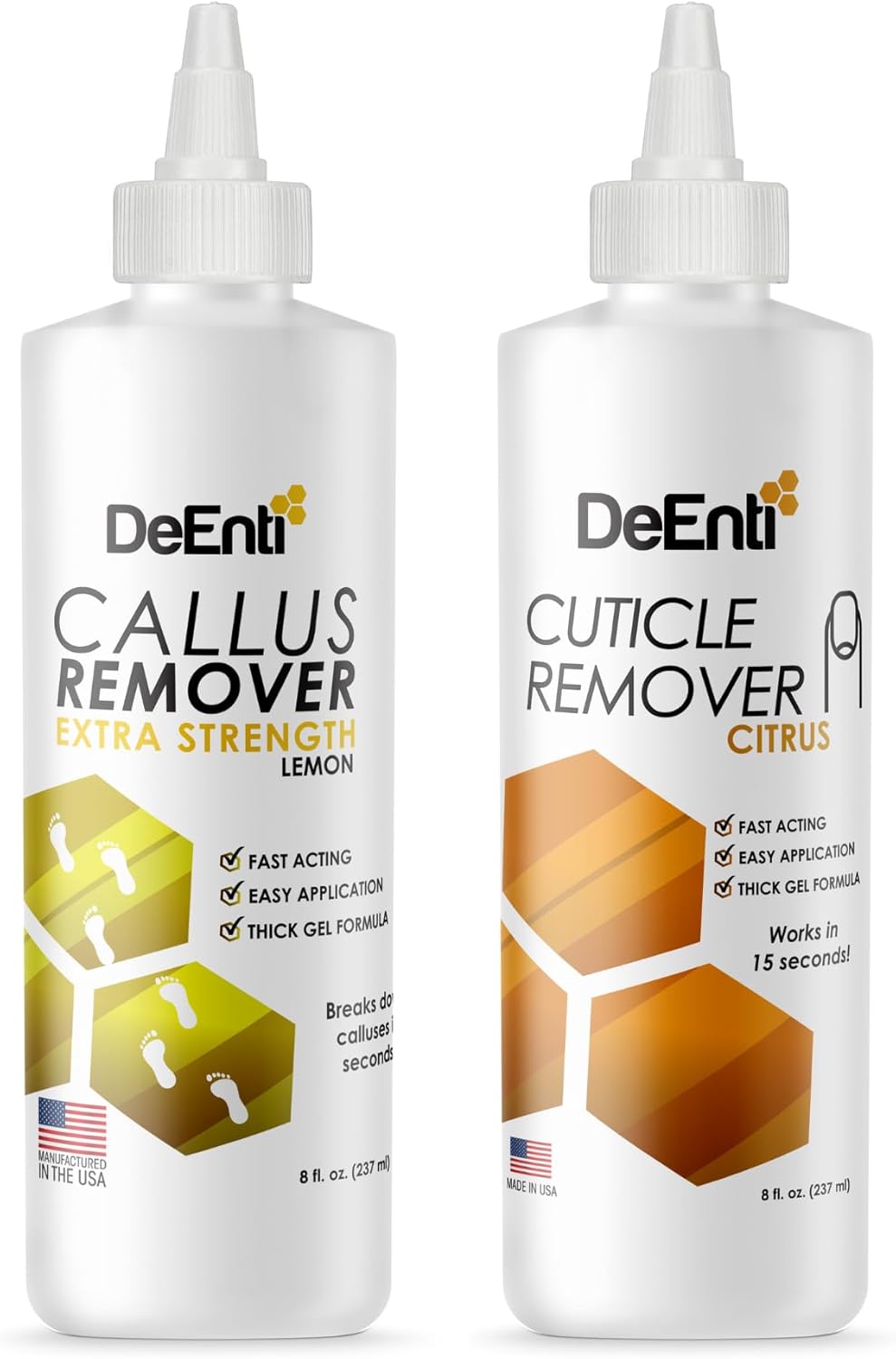 Proven, High Quality Formula Deenterprises' Callus Remover Gel And Cuticle Softener Have Been Used Daily In Salons Across The Country For Over 40 Years! Family Owned And Made In The Usa. Purchase Includes One 8Oz Bottle Of Lemon Extra Strength Callus Removal Gel + One 8Oz Bottle Of Cuticle Softener