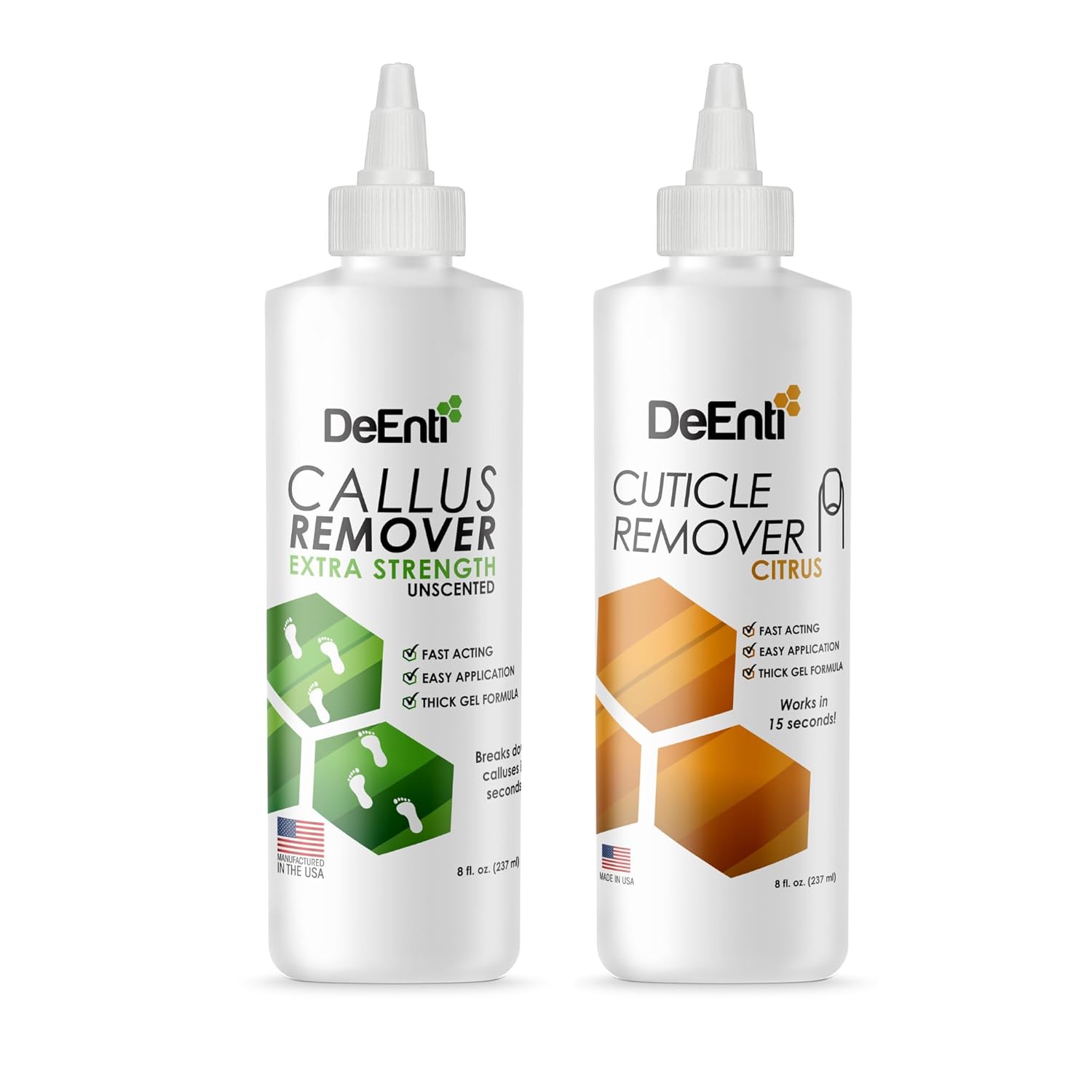 Deenti Nail Care Set - Unscented Callus Remover & Citrus Cuticle Remover - Professional Quality Nail Care Kit, Salon Grade 8Oz Bottles, Home Manicure And Pedicure Kit