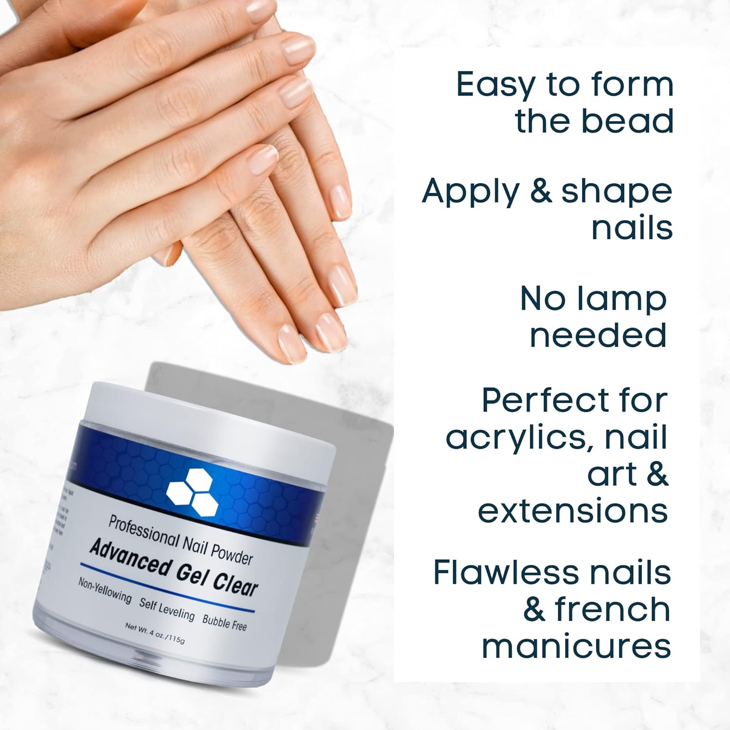 Non-Yellowing & Self Leveling Powder Formula Creates Smooth, Shiny Nails Without Excessive Filing And Prep. Manufactured Under The Strictest Quality Control To Ensure Professional Looking Nails Every Time. Strength, Adhesion, And Consistency Are Salon Quality Without The Cost