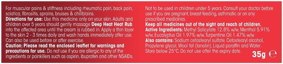 Deep Heat Heat Rub, For Muscular & Rheumatic Aches, Pain And Stiffness, 35G (Pack Of 1)