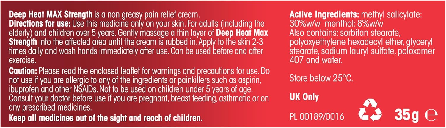 Deep Heat Maximum Strength, Pain Relief Cream For Muscular & Rheumatic Aches, Pain And Stiffness, 35 G (Pack Of 1)