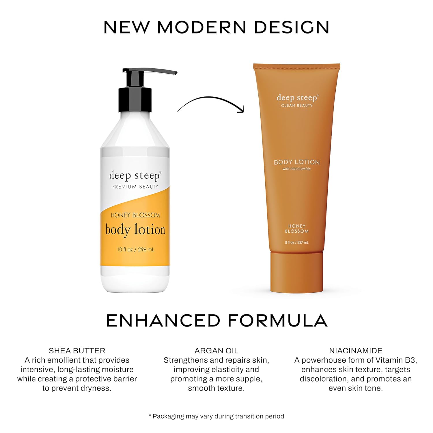 Deep Steep Body Lotion, Honey Blossom, 8 Oz – Moisturizer With Coconut Oil, Shea Butter, Argan Oil, Aloe Vera & Niacinamide – Vegan, Clean Beauty, Daily Skin Hydration