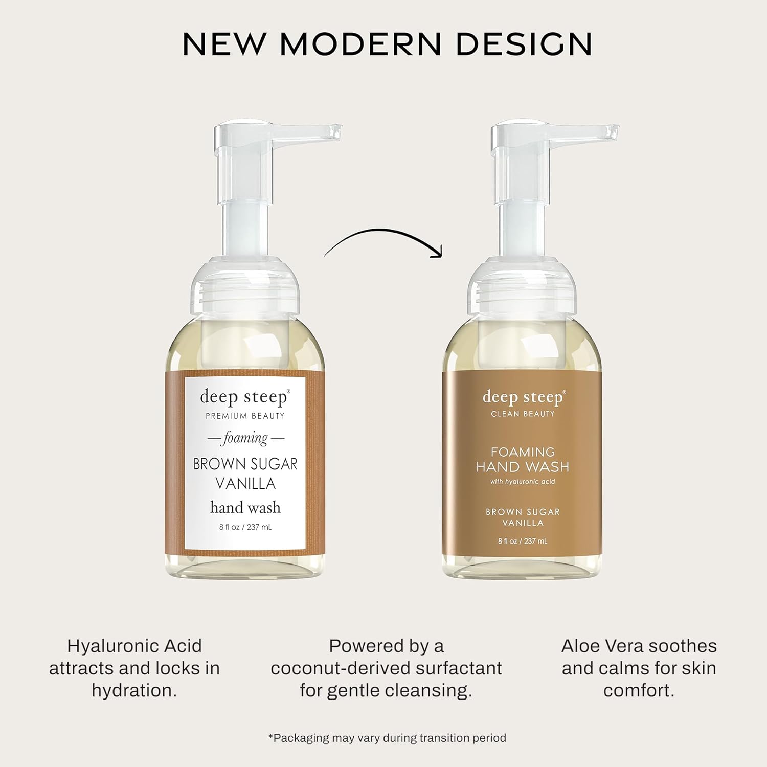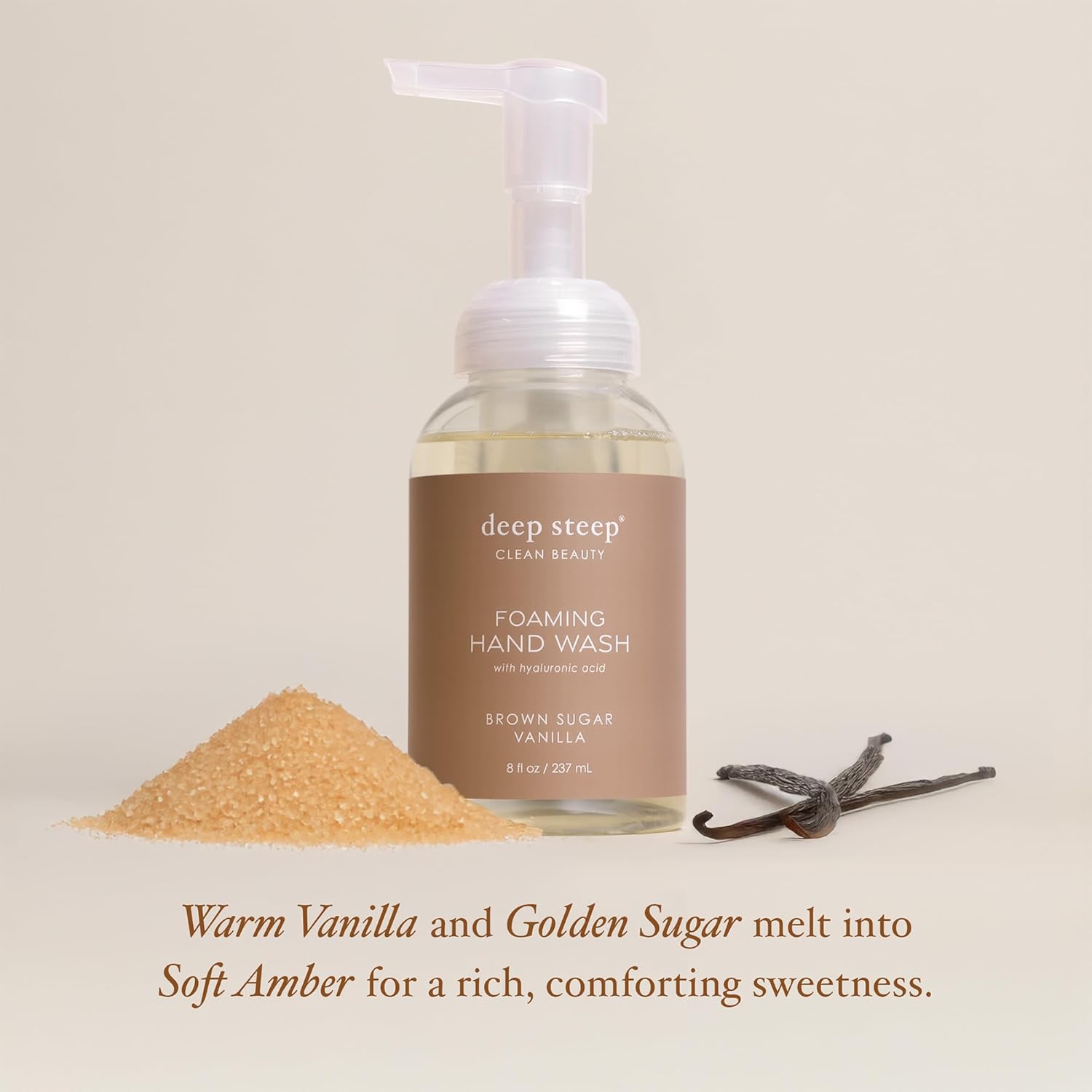 Deep Steep Foaming Hand Wash, Brown Sugar Vanilla, 8 Oz – Gentle Cleanser With Aloe, Argan Oil, Shea Butter & Hyaluronic Acid – Vegan, Clean Beauty, Soft & Hydrated Hands
