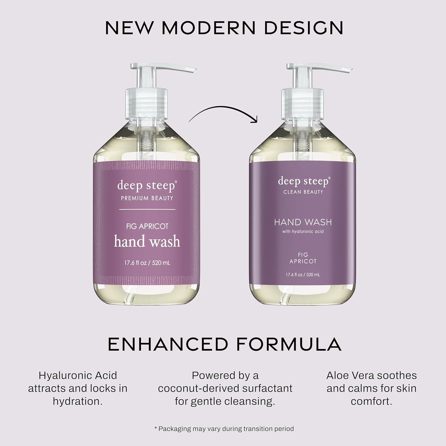 Deep Steep Liquid Hand Wash, Fig Apricot, 17.6 Oz – Moisturizing Cleanser With Olive Oil, Aloe Vera, Glycerin & Hyaluronic Acid – Vegan, Clean Beauty, Soft & Nourished Hands