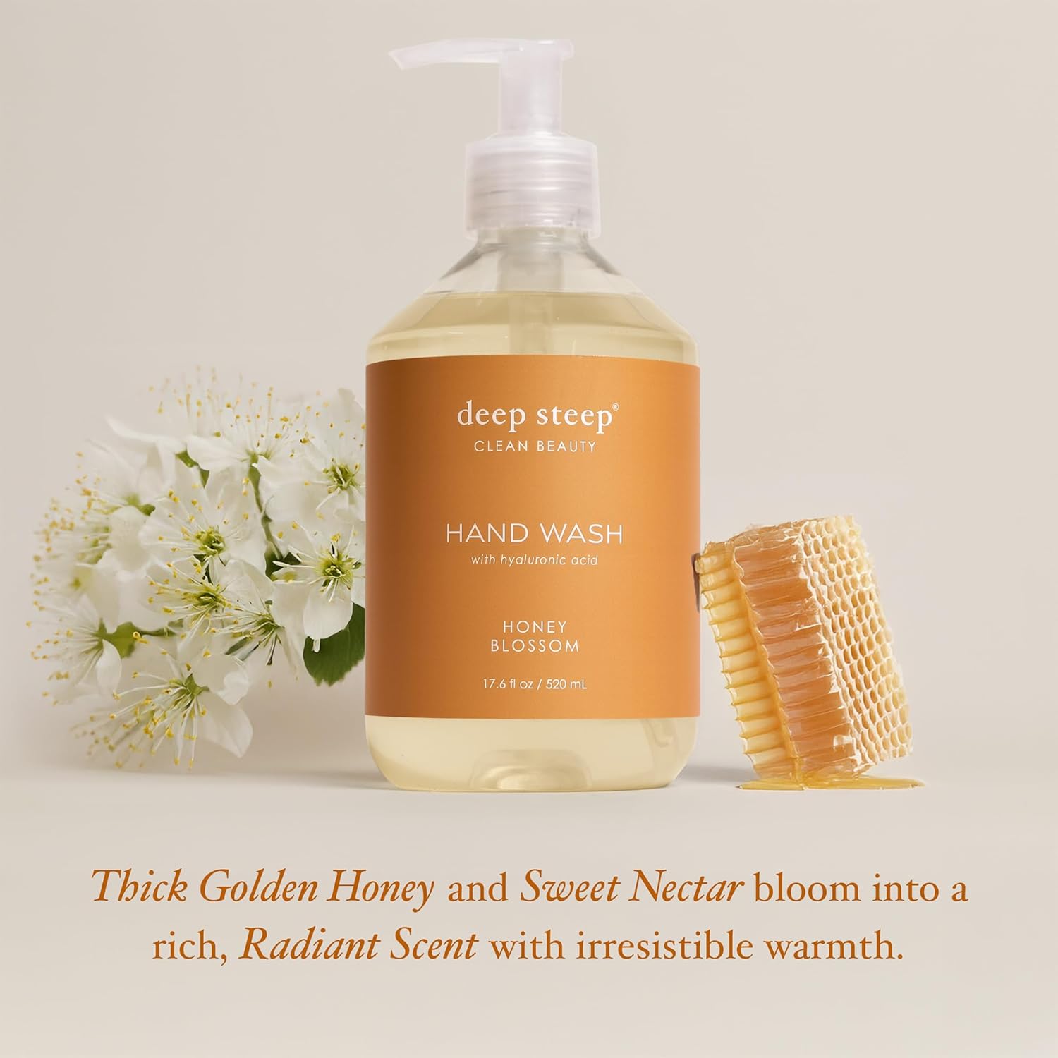 Deep Steep Liquid Hand Wash, Honey Blossom, 17.6 Oz – Moisturizing Cleanser With Olive Oil, Aloe Vera, Glycerin & Hyaluronic Acid – Vegan, Clean Beauty, Soft & Nourished Hands