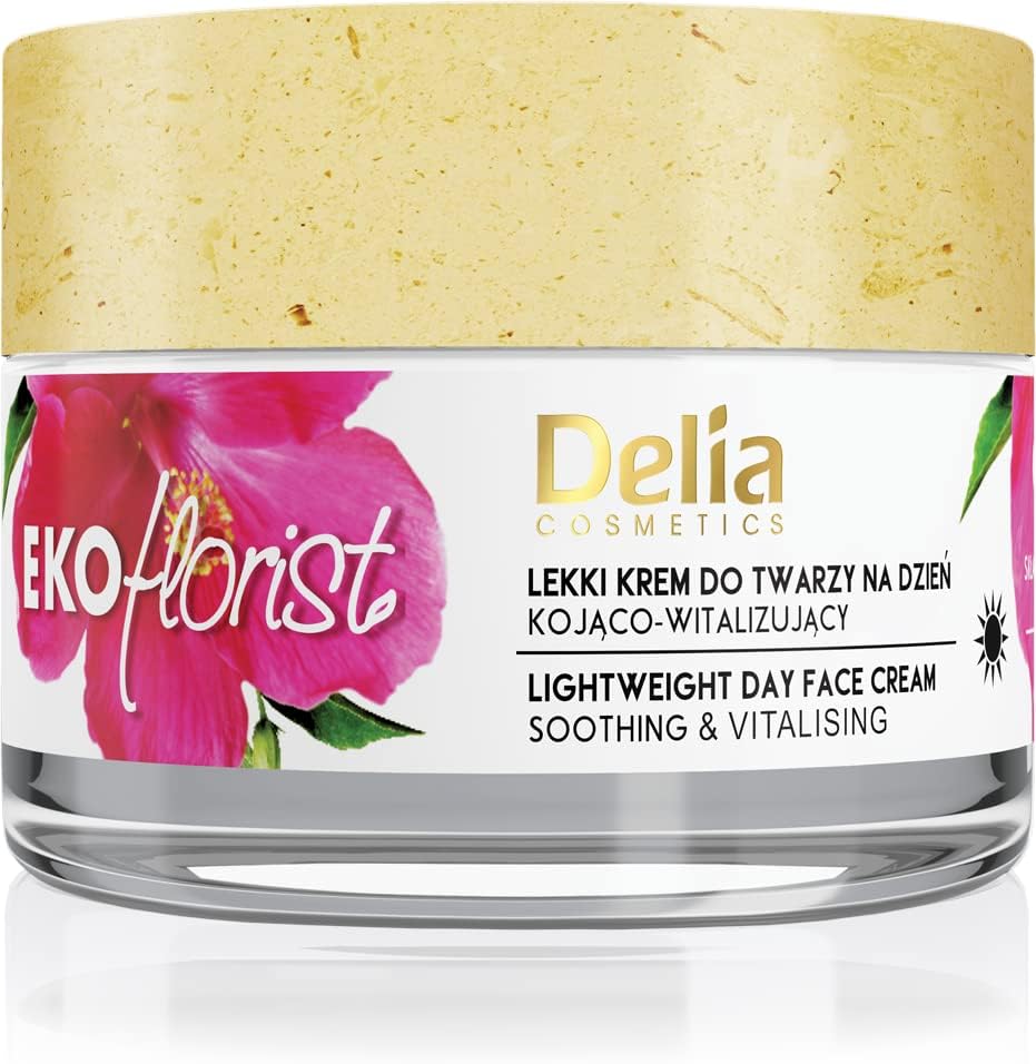 Delia Cosmetics - Ekoflorist - Soothing & Vitalizing Day Cream - Light Formula - Vegan, Natural Cosmetic - Shea Butter, Argan Oil And Hibiscus Extract - Moisturized, Nourished Skin - Anti Aging - 50Ml