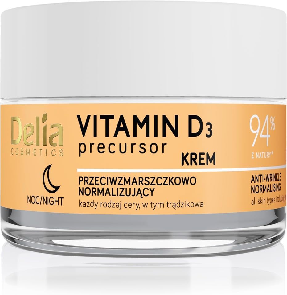 Delia Cosmetics – Vitamin D3 Precursor - Anti-Wrinkle Normalising Day Cream – All Skin Types - Acne Skin - Hydrating, Firming – Reducing Sebum – Co-Enzyme Q10 – Niacinamide – Tumeric – Hemp Oil – 50Ml