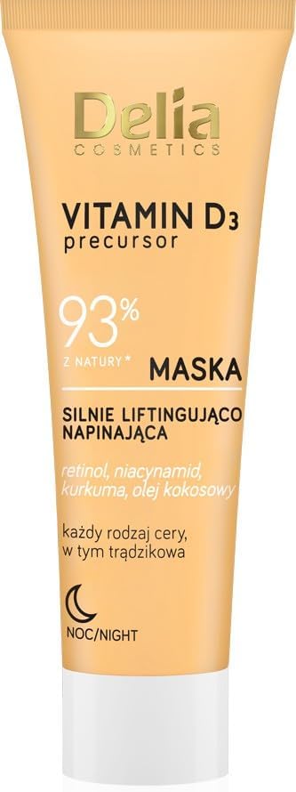 Delia Cosmetics – Vitamin D3 Precursor - Strongly Lifting And Firming Mask – All Skin Types – Acne Skin – Hydrating – Minimisng Fine Lines – Retinol – Niacinamide – Tumeric – Coconut Oil – 50Ml