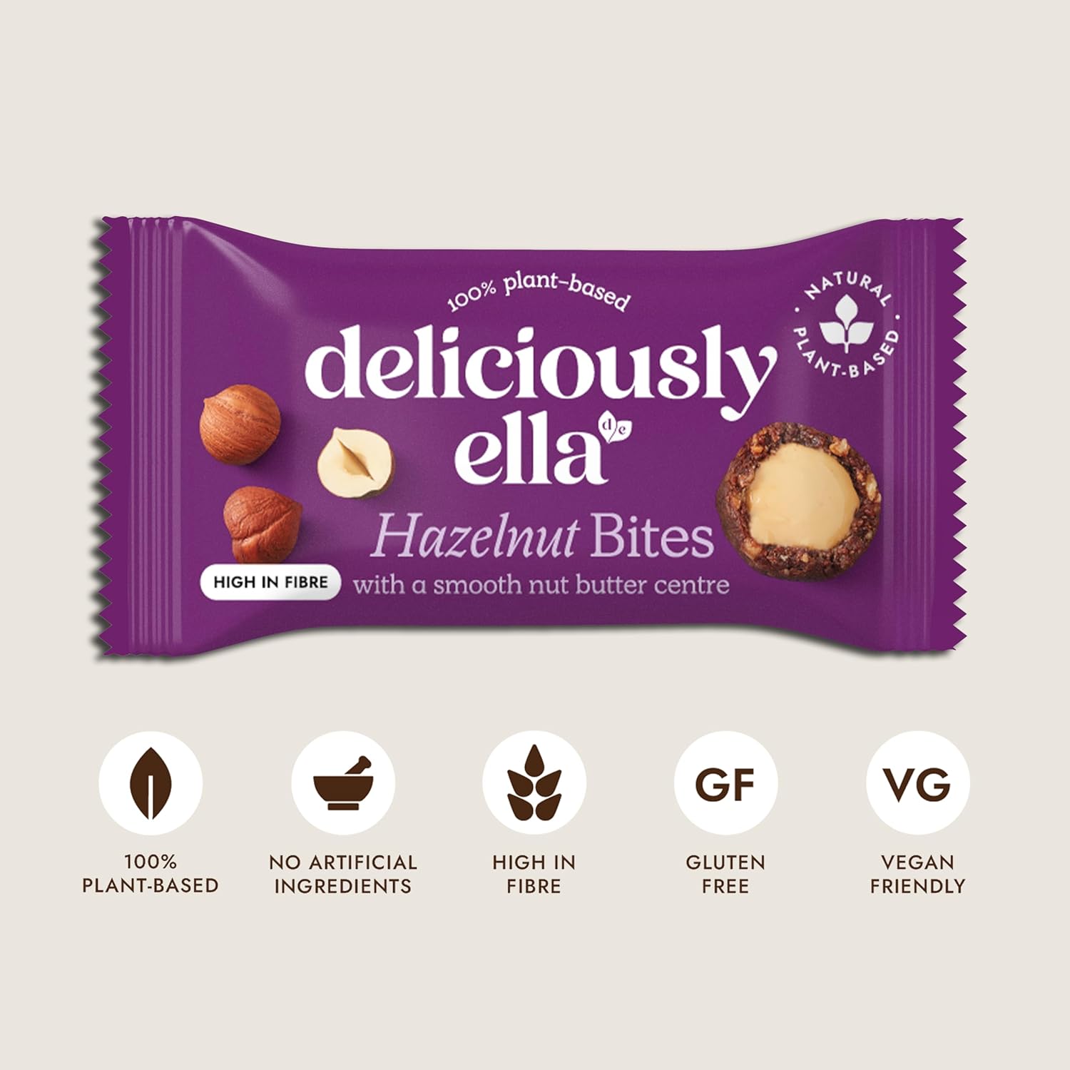 Deliciously Ella - Hazelnut Nut Butter Balls, Gluten-Free, Vegan Friendly, Healthy Snack, 36G (12 Packs)