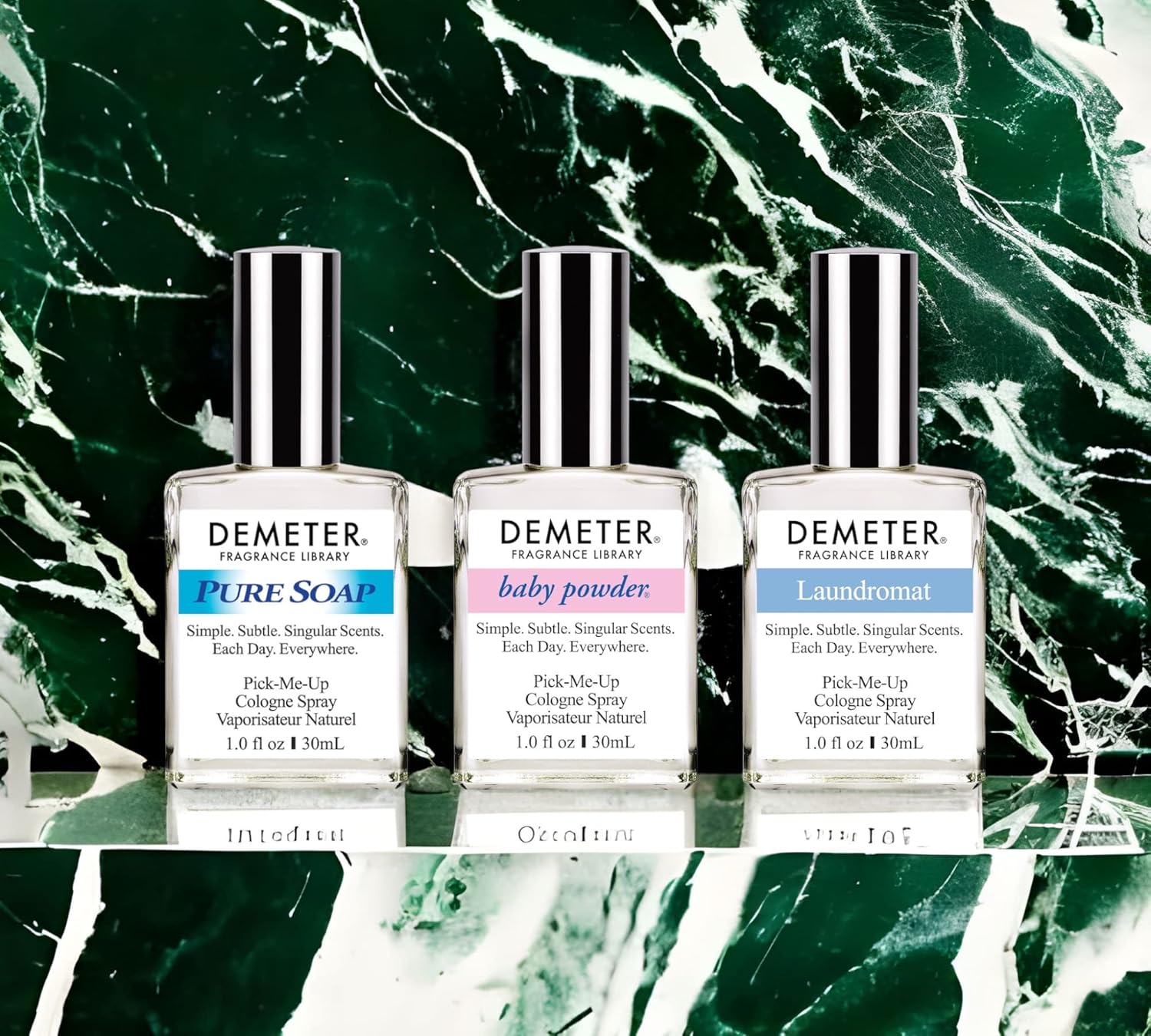 Set of 3 Unique Colognes - - Demeter Fragrance Fresh And Clean Collection is a set of 3 fragrances. Baby Powder smells like a clean and fresh baby; Pure Soap smells like fresh from the shower; and Laundromat is perhaps the freshest, cleanest scent imaginable. No Harmful Ingredients - All Demeter Fragrances are clean, and contain no artificial colors or preservatives, phthalates or parabens, and are made from alcohol naturally fermented from corn. Perfumes that are packed only with goodness. Enhance the Way You Feel - Demeter fragrances change the way you feel, so apply several times throughout the day to manage your mood-because when you smell something you love, you have to smile. Travel-Friendly - A cologne for women and men that is TSA compliant and fits in any bag without hassle. The compact size of this sturdy bottle makes it an ideal travel-buddy no matter where you go. Essence of Elegance - Make your cologne a signature of your personality with the best fragrances from Demeter Fragrance Library. Wear it in the morning or the evening, it will spread the magic! › See more product details,Set of 3 Unique Colognes - - Demeter Fragrance Fresh And Clean Collection is a set of 3 fragrances. Baby Powder smells like a clean and fresh baby; Pure Soap smells like fresh from the shower; and Laundromat is perhaps the freshest, cleanest scent imaginable,No Harmful Ingredients - All Demeter Fragrances are clean, and contain no artificial colors or preservatives, phthalates or parabens, and are made from alcohol naturally fermented from corn. Perfumes that are packed only with goodness,Enhance the Way You Feel - Demeter fragrances change the way you feel, so apply several times throughout the day to manage your mood-because when you smell something you love, you have to smile,Travel-Friendly - A cologne for women and men that is TSA compliant and fits in any bag without hassle. The compact size of this sturdy bottle makes it an ideal travel-buddy no matter where you go,Essence of Elegance - Make your cologne a signature of your personality with the best fragrances from Demeter Fragrance Library. Wear it in the morning or the evening, it will spread the magic!