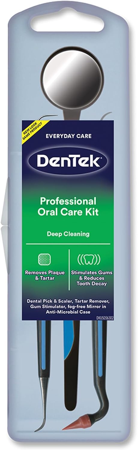 Dentek Professional Oral Care Kit, Advanced Clean Offers Five Dishwasher-Safe, At-Home Tools For An In-Depth Oral Cleaning. Dental Pick And Scaler, Tartar Remover, Gum Stimulator And Fog-Free Mirror Come In A Germ Shield Antimicrobial Case. These Tools Will Help Fight Bad Breath, Whiten Teeth, Stimulate Gums And Remove Plaque To Boost A Confident Smile. With Daily And Weekly Use Of The Tools It Makes Deep Cleaning Easy To Remove Food, Stains And Reduce Tooth Decay. The Kit Provides Plastic And Stainless Steel Scalers. It Is Recommended To Use The Stainless Steel Scaler Once A Week And Plastic Daily. The Dental Pick Is Best Used At The Gum Line And In Between Teeth To Remove Food, Plaque And Tartar For Healthy, White Teeth. The Gum Stimulator Is Best Used In A Circular Motion To Massage The Gums Between Teeth. Go Beyond Brushing With Dentek! Help Preserve And Protect Your Teeth For A Lifetime With Dentek'S Innovative Dental Care Products