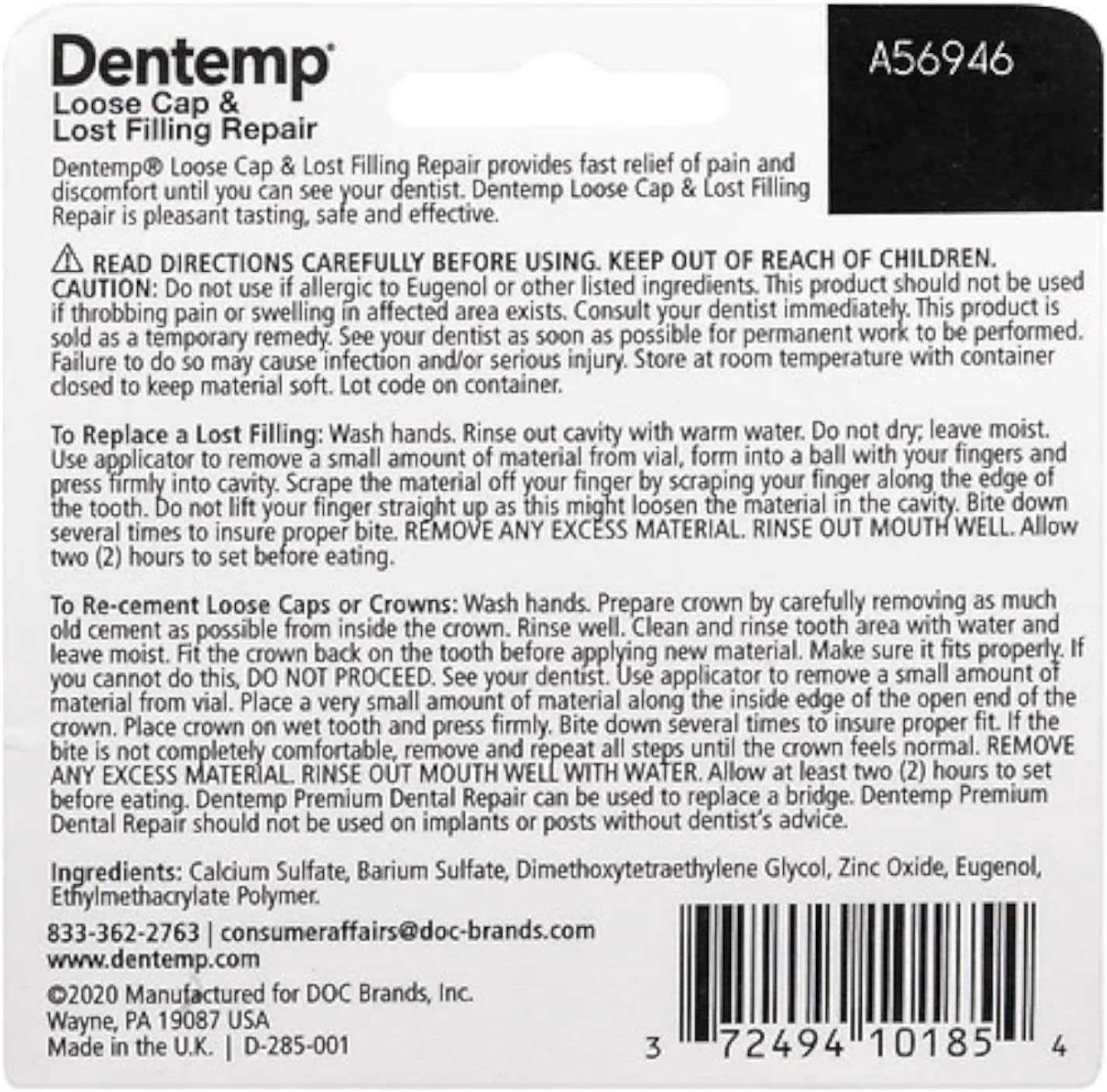ABOUT THE PRODUCT: 1 > Multiple applications 2 > Ready to use 3 > Eat on it in 60 minutesDentemp Repair Lost Fillings & Loose Caps Max Strength (6 Pack)