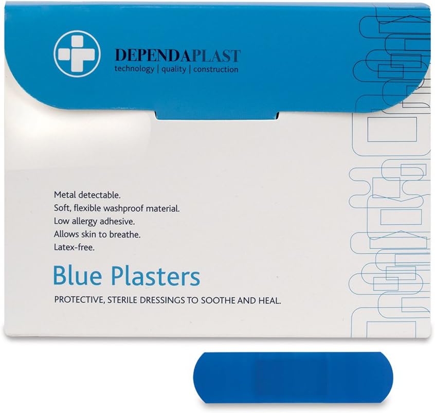 Dependaplast Food Area Blue Plasters With High Visibility And Metal Detection Properties, Easily Detectable, Individually Wrapped 7 Cm X 2 Cm, Blue (Pack Of 100)