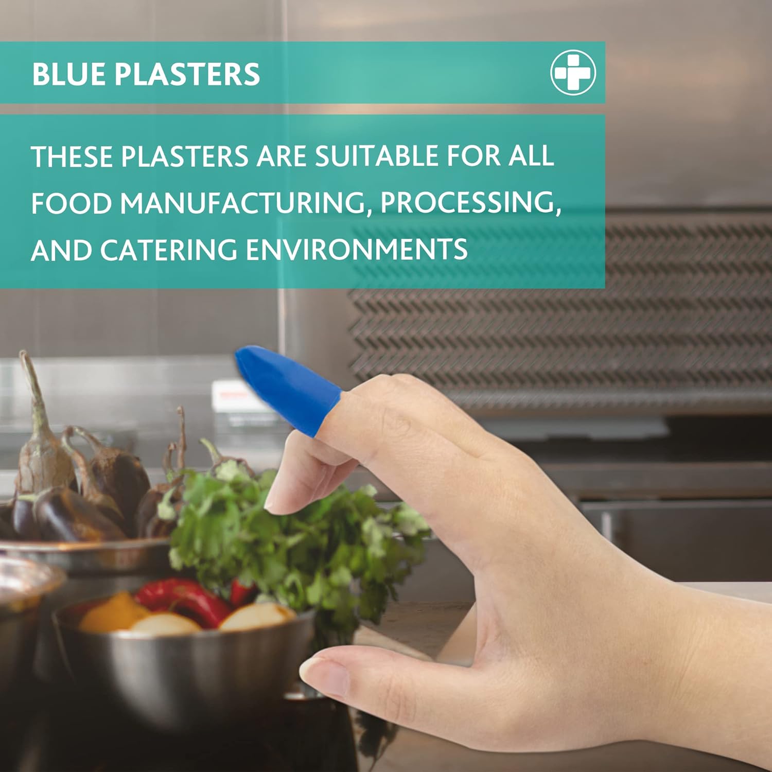 Dependaplast Food Area Blue Plasters With High Visibility And Metal Detection Properties, Easily Detectable, Individually Wrapped - Assorted Box Of 100