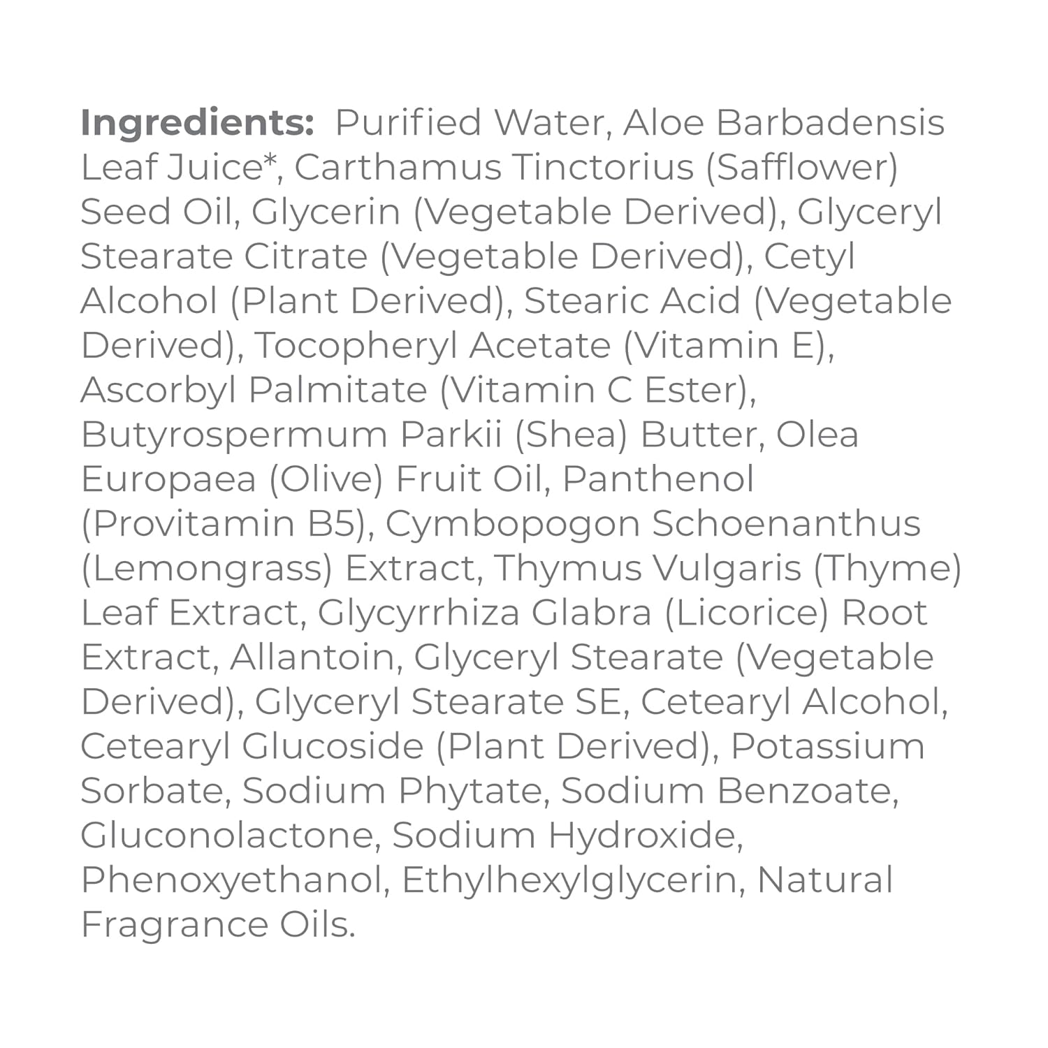 All Natural Formula: Shea Butter Deeply Moisturizes; Vitamin E Helps Protect; Vitamin C Has Skin-Brightening Properties; Phas Help To Exfoliate; Thyme Extract Supports Dry, Cracked Skin; And Lemongrass Works To Keep Oil Levels Balanced