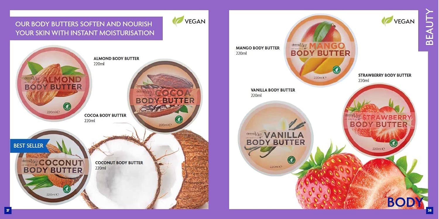 About The Product : Derma V10 Body Butter Moisturising Cream Vegan Friendly 4 Pack Coconut