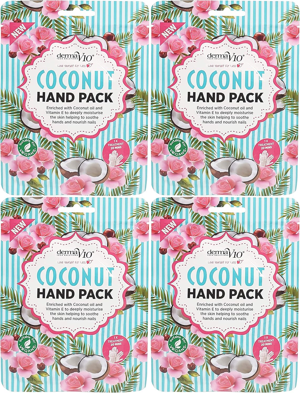 Derma V10 Coconut Hand Pack, Deep Moisturising, Enriched With Coconut Oil And Vitamin E - 4 Pack